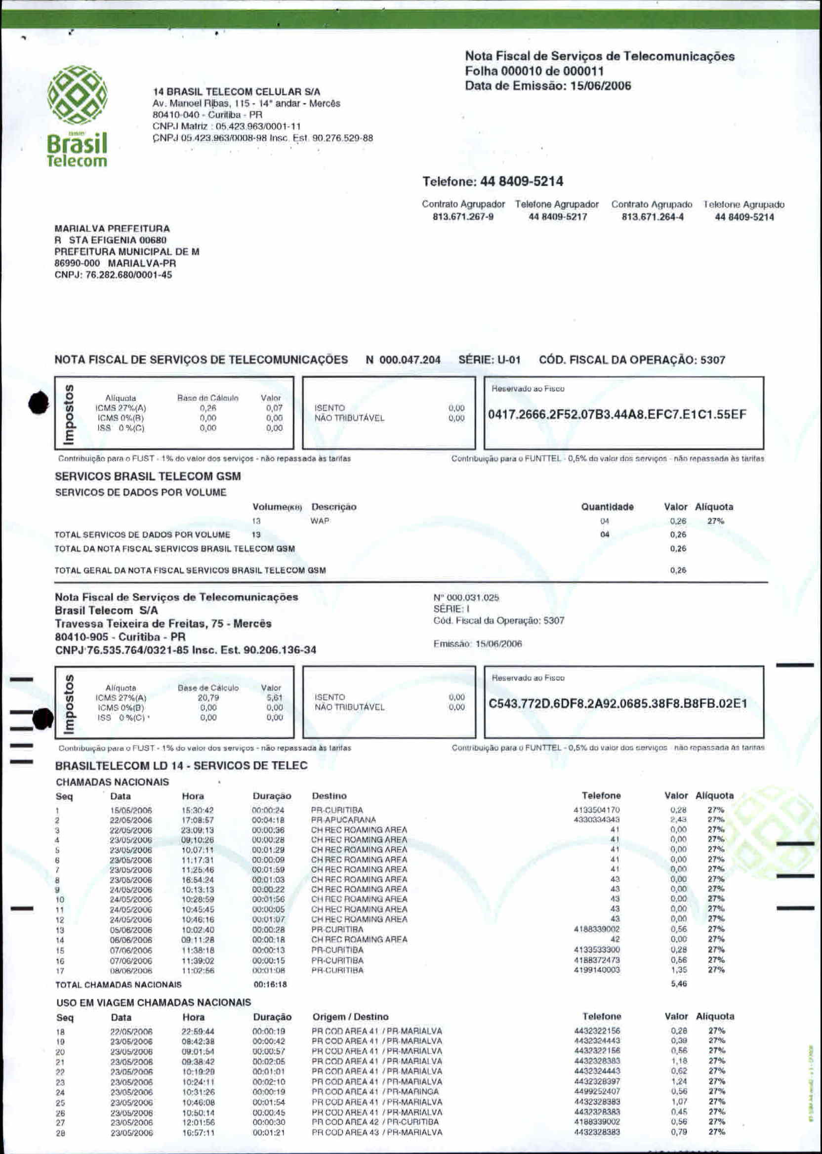 Index of /2006/JUNHO/BALANCETE JUNHO-2006 - 4/14 BRASIL TELECOM CELULAR S A/5584