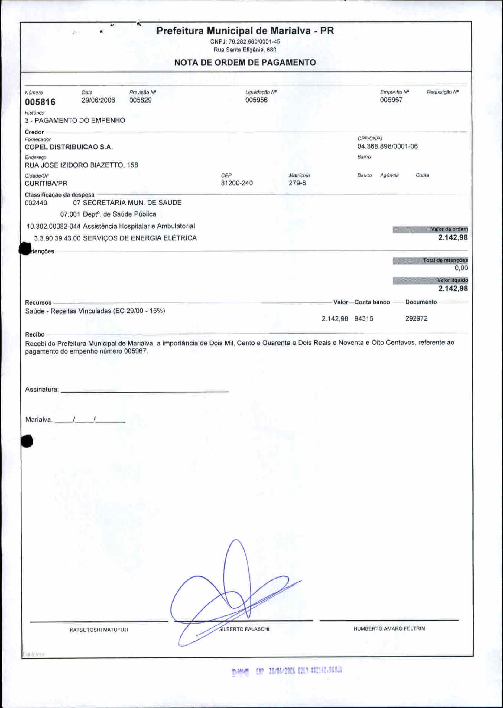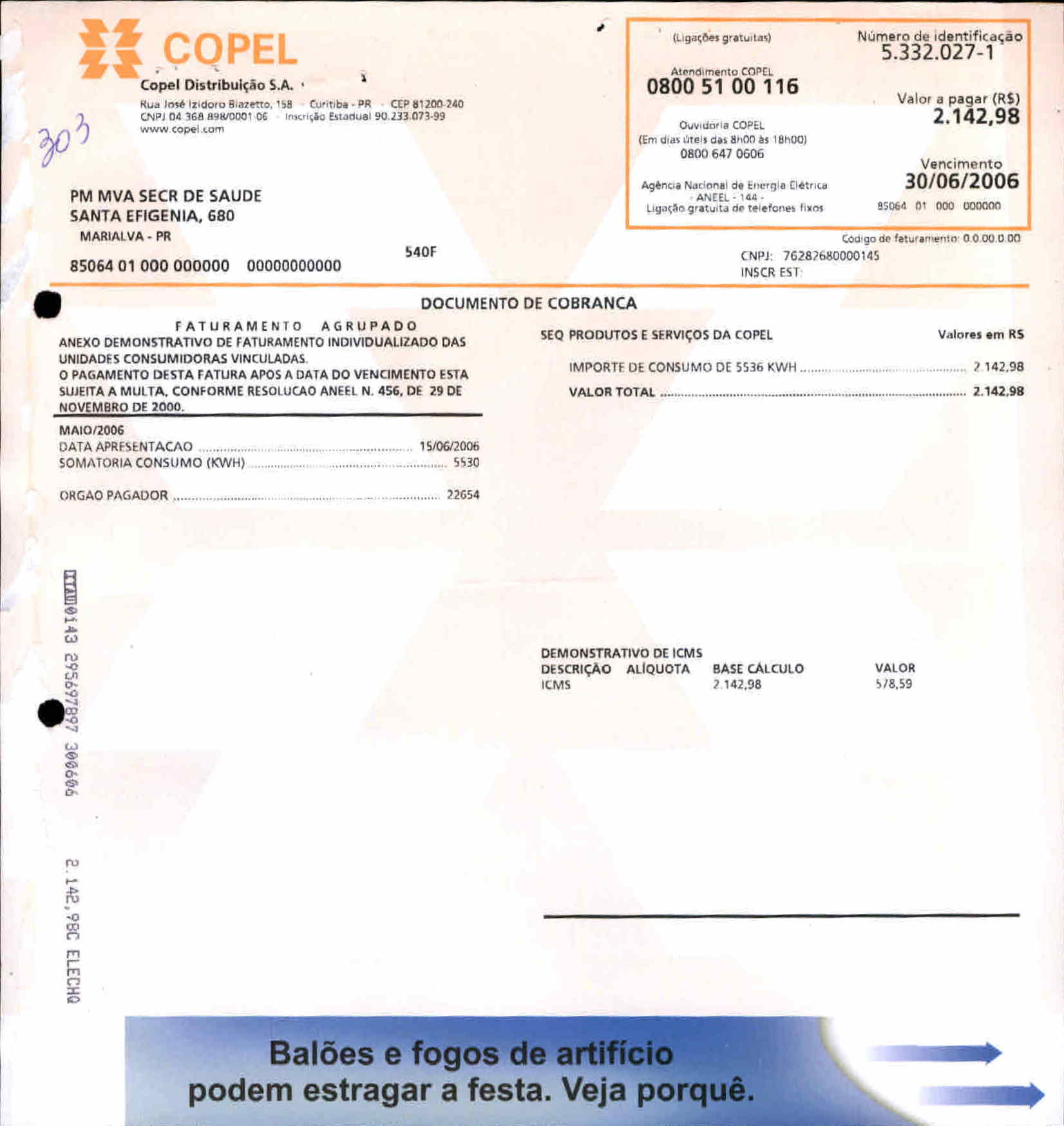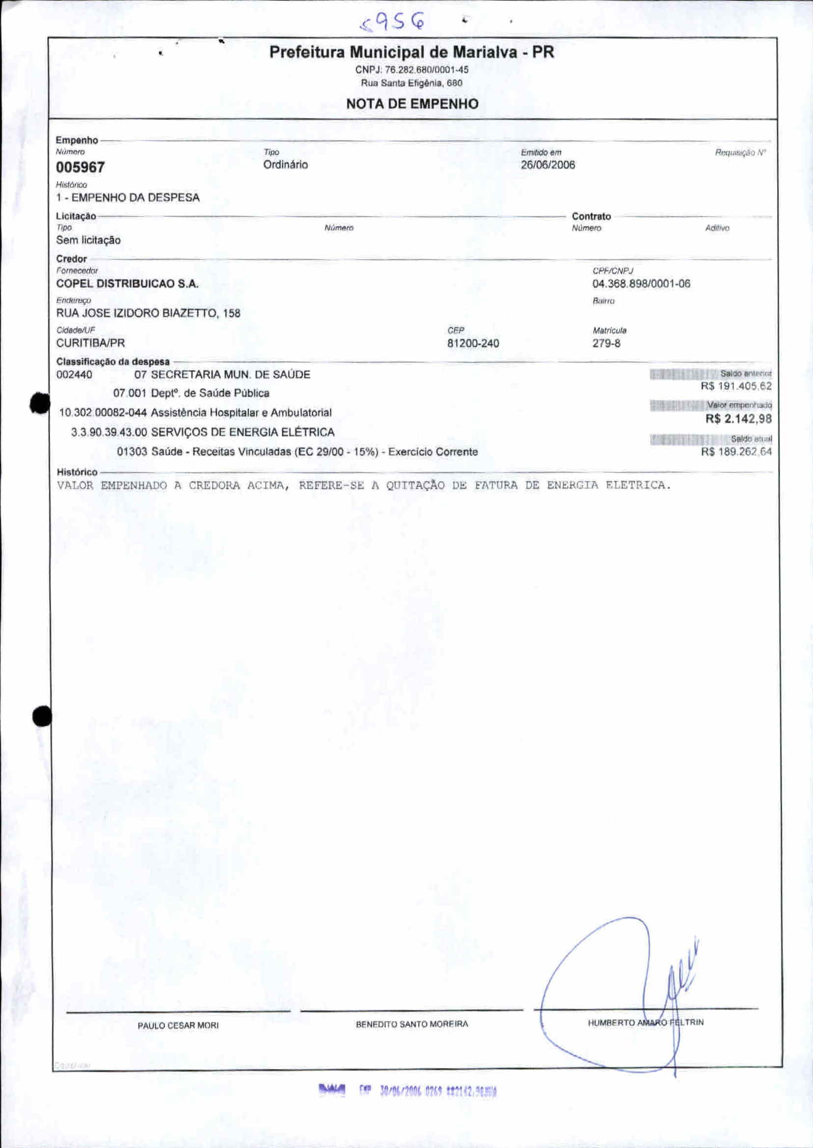 Index of /2006/JUNHO/BALANCETE JUNHO-2006 - 7 - SAUDE/COPEL DISTRIBUICAO S.A/5816