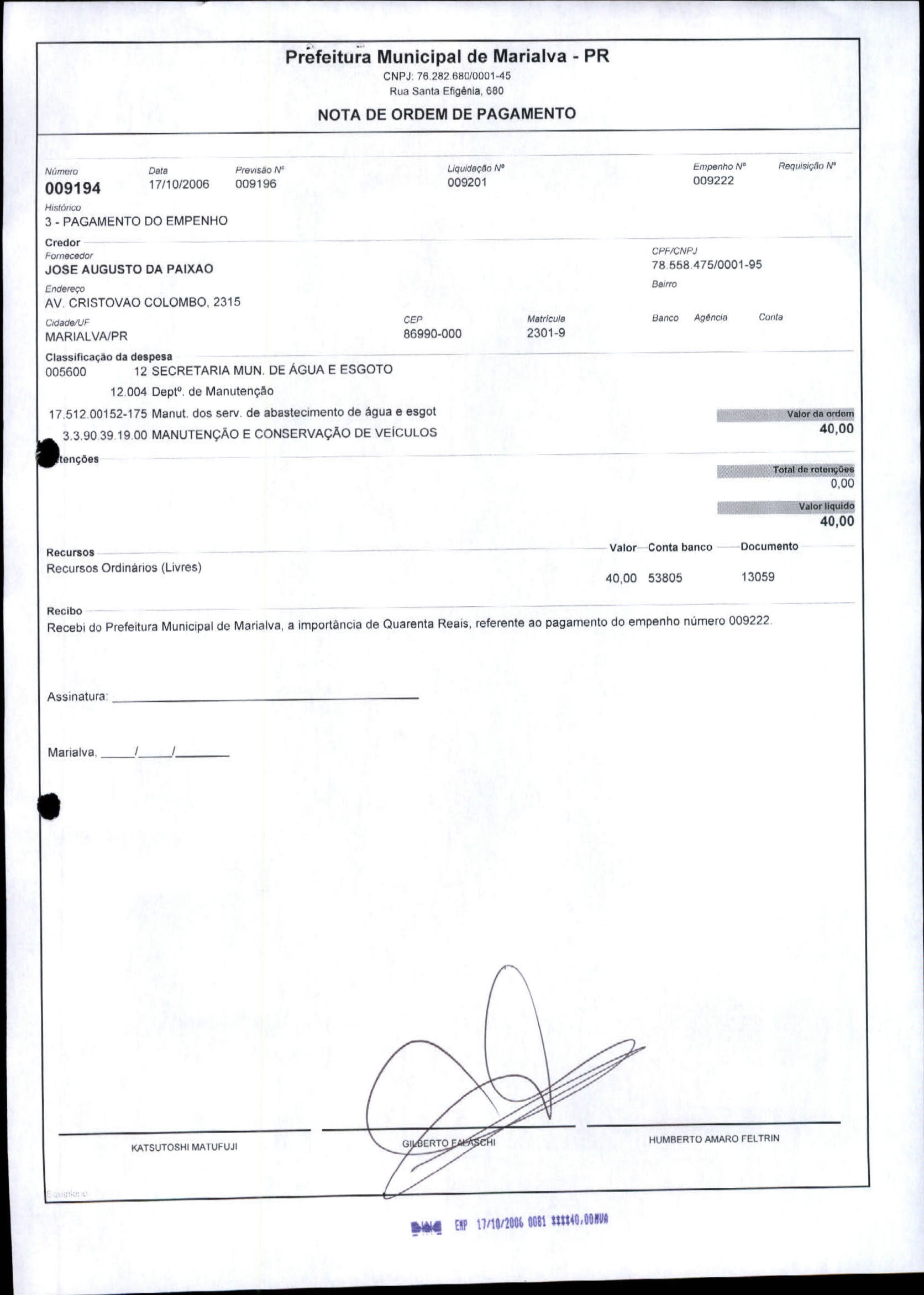 Index of /2006/OUTUBRO/BALANCETE OUTUBRO - 2006 - 5/JOSE AUGUSTO DA PAIXAO/9194