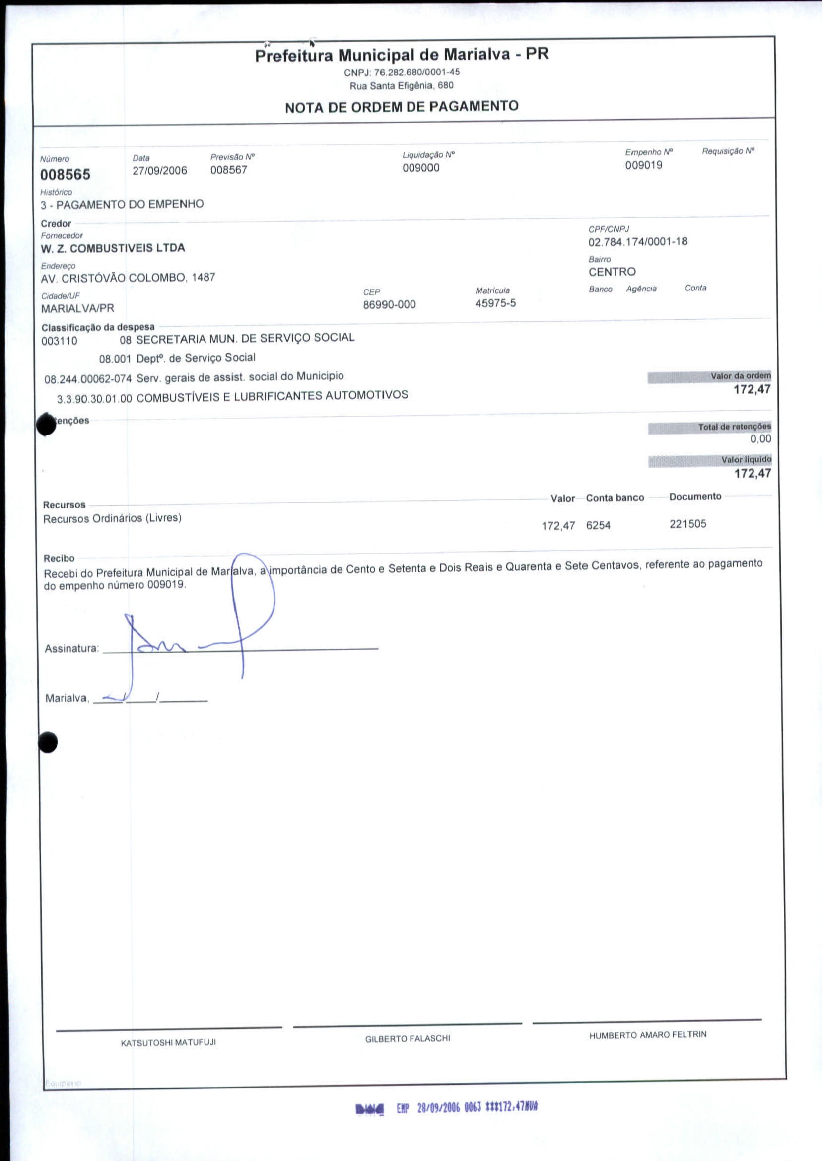 Index of /2006/SETEMBRO/BALANCETE - SETEMBRO 2006 - 5/W. Z. COMBUSTIVEIS LTDA/8565