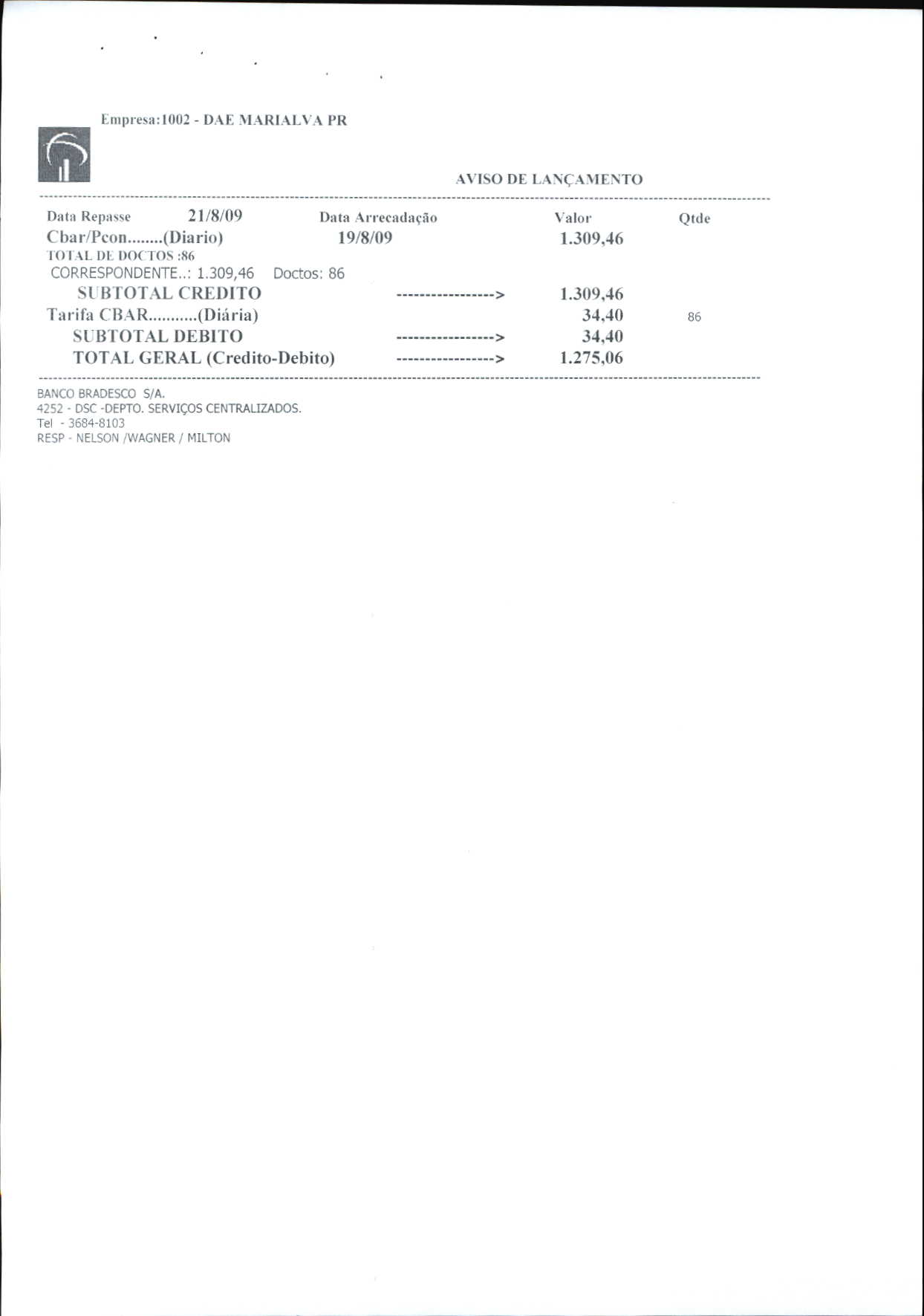 Index of /2009/AGOSTO/BALANCETE AGOSTO-2009/BANCO BRADESCO S A/7133-2009