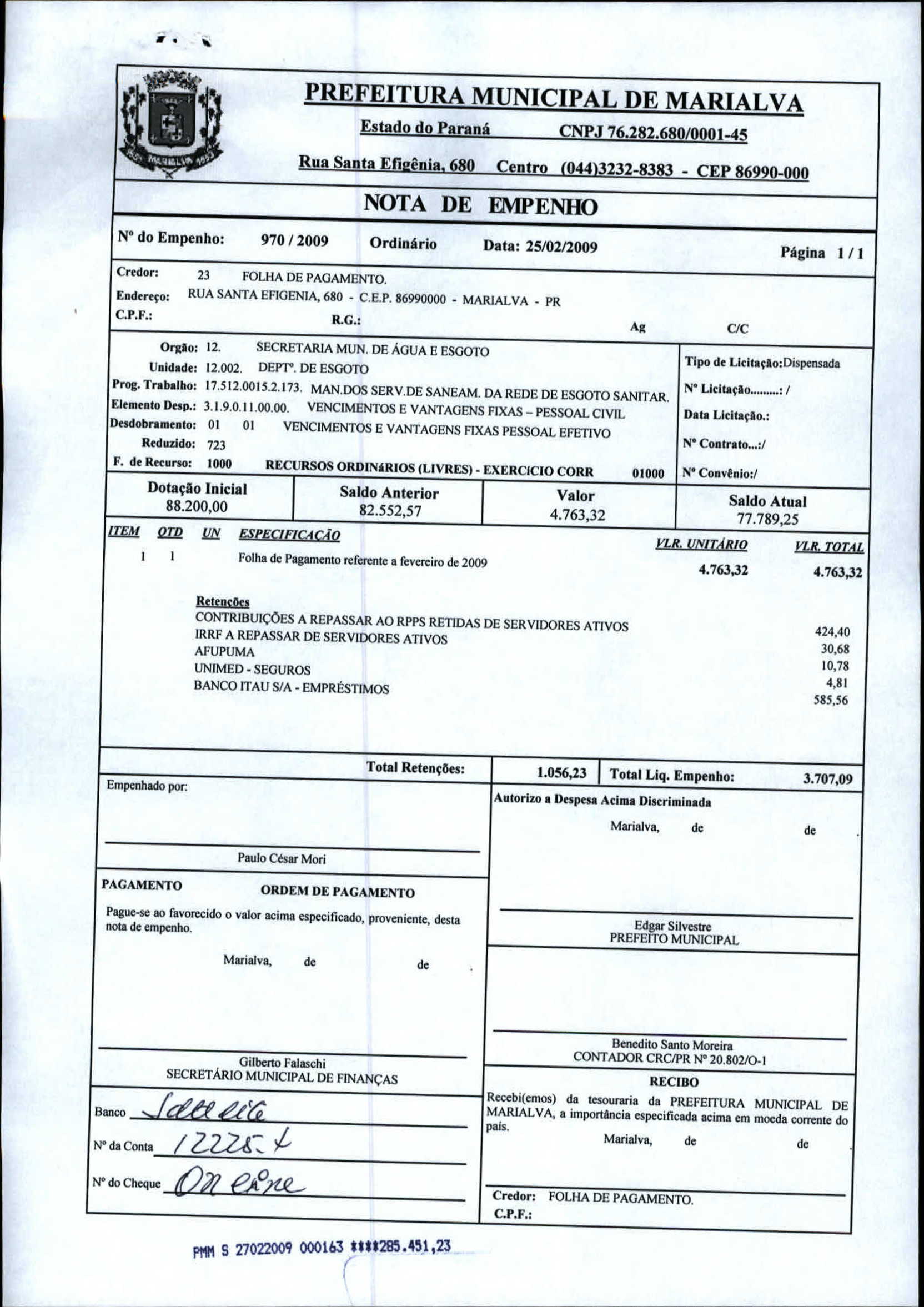 Index of /2009/FEVEREIRO/BALANCETE FEVEREIRO-2009/FOLHA DE PAGAMENTO/970-2009