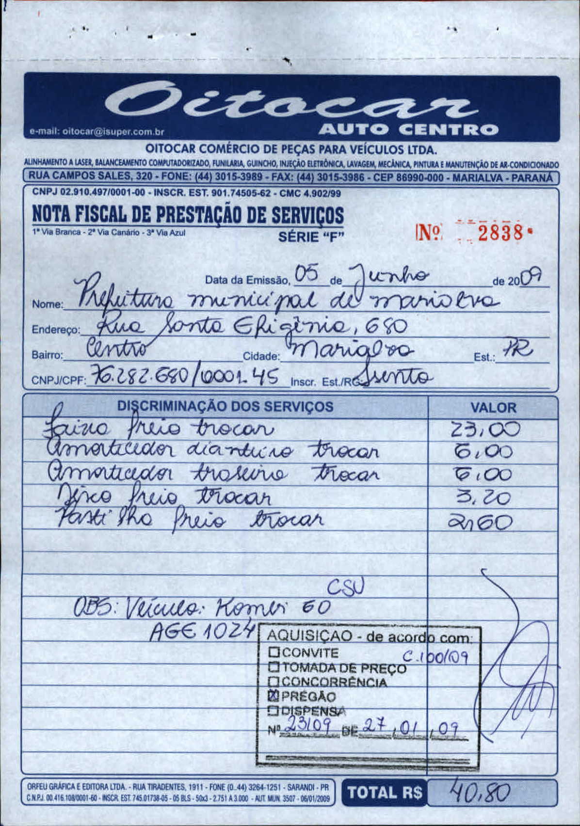 Index of /2009/JUNHO/BALANCETE JUNHO-2009/OITOCAR COM. DE PECAS PARA VEICULOS LTDA/4232-2009