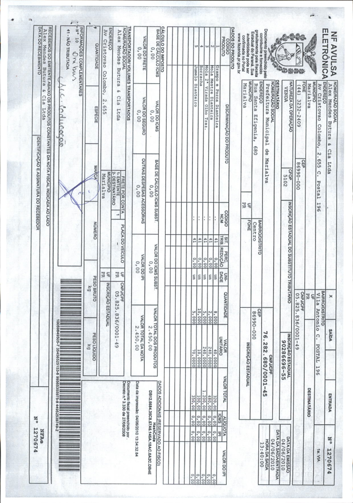 Index of /2010/JUNHO/BALANCETE JUNHO-2010/ALEX MENDES BUTURA & CIA. LTDA/4777-2010