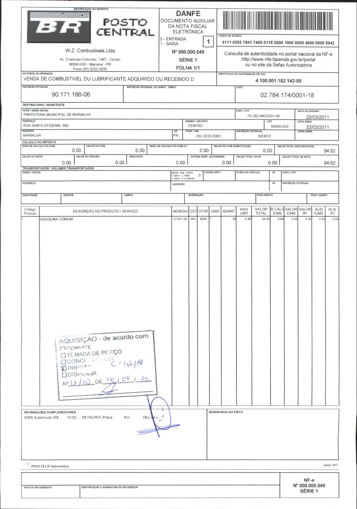 Index of /2011/ABRIL/BALANCETE ABRIL-2011/W. Z. COMBUSTIVEIS LTDA/2754-2011