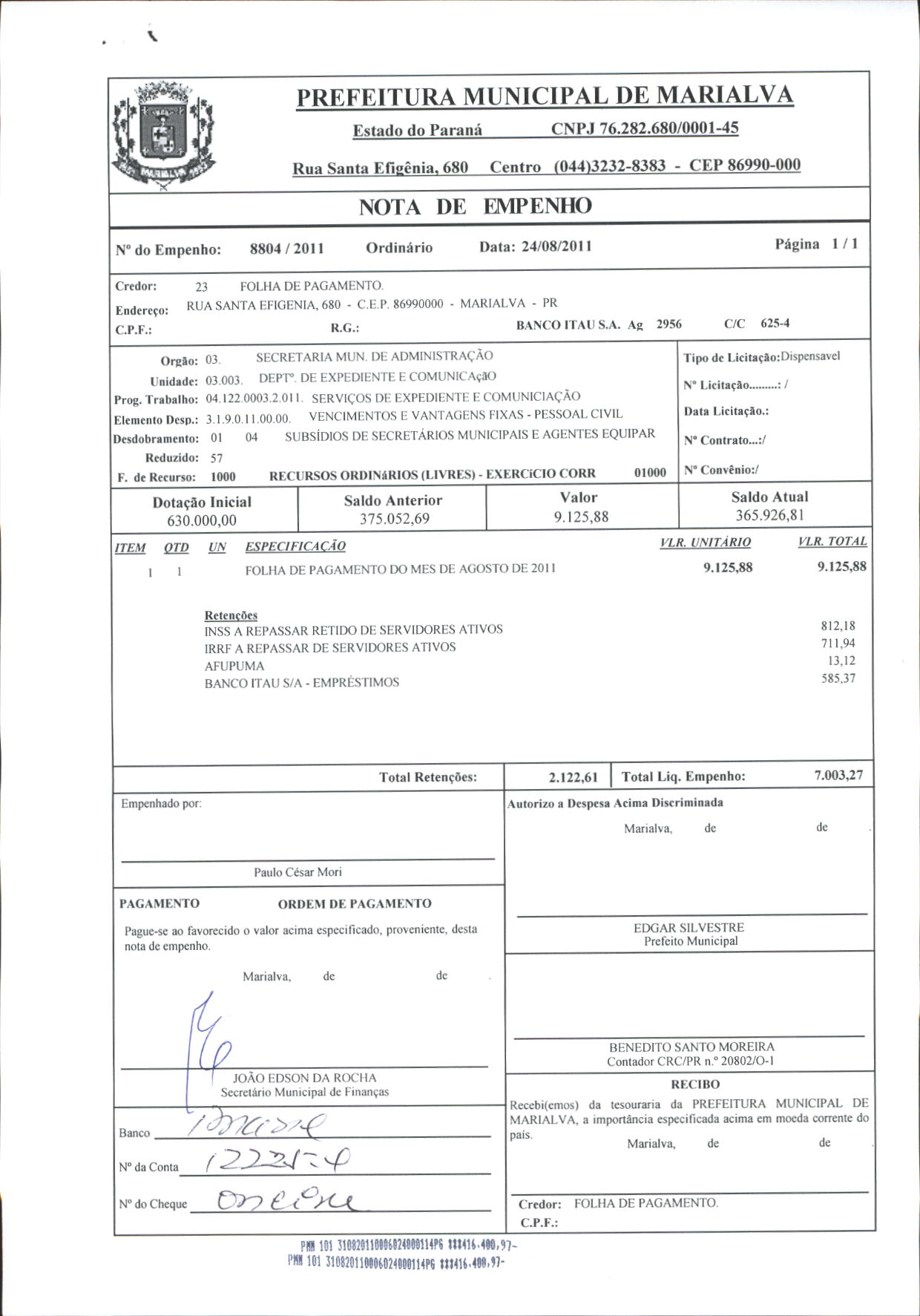 Index of /2011/AGOSTO/BALANCETE AGOSTO-2011/FOLHA DE PAGAMENTO/8804-2011