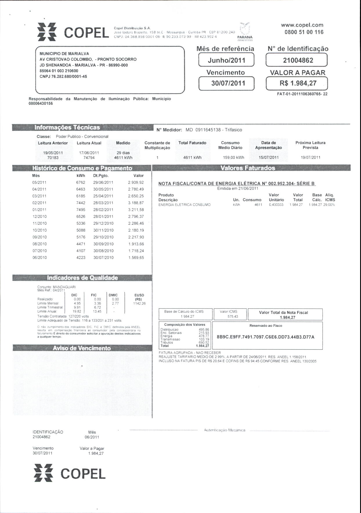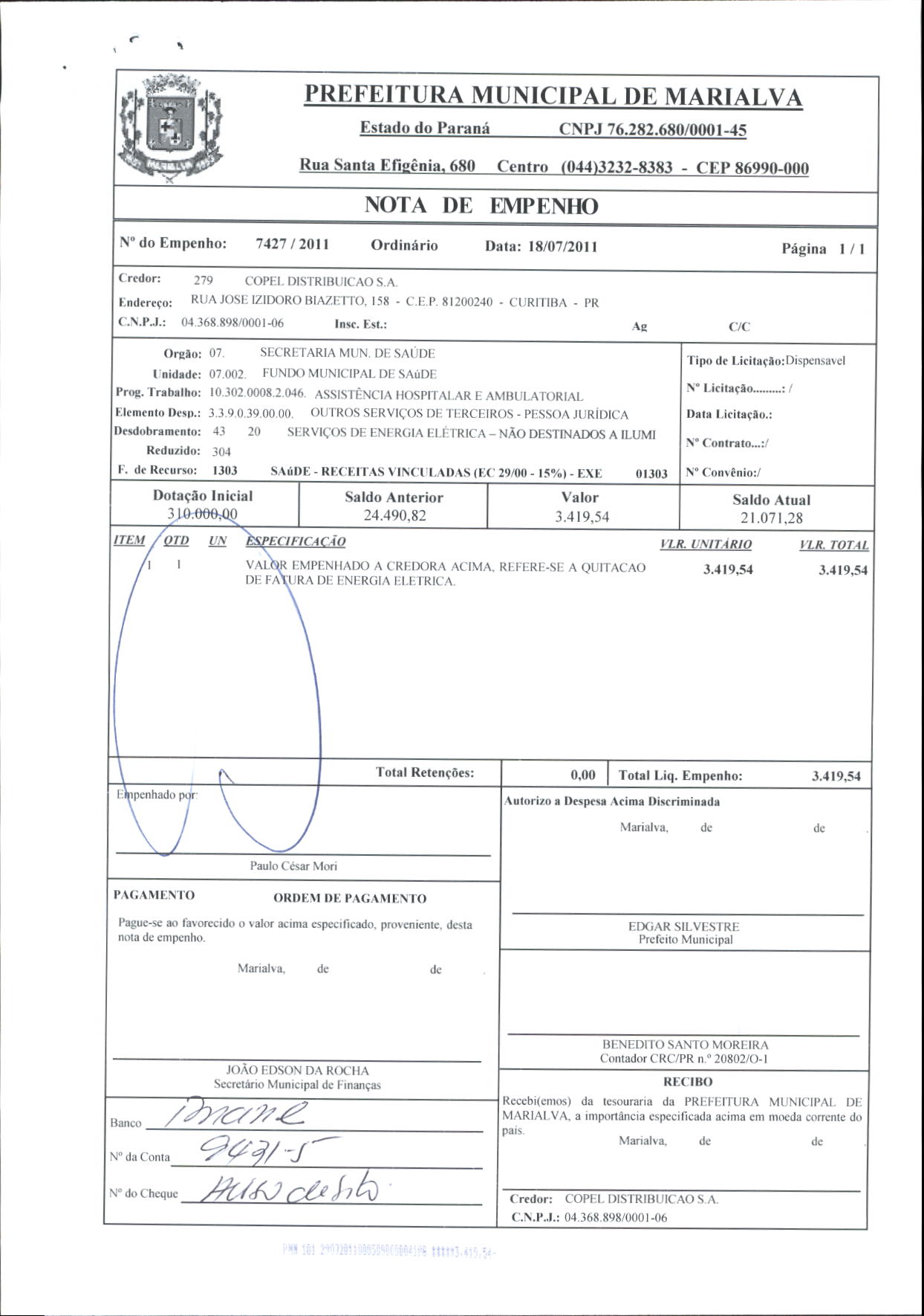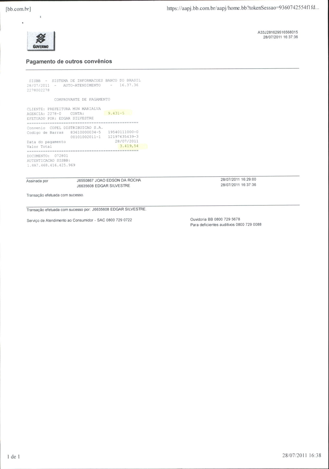 Index of /2011/JULHO/BALANCETE JULHO-2011/COPEL DISTRIBUICAO S.A/7427-2011