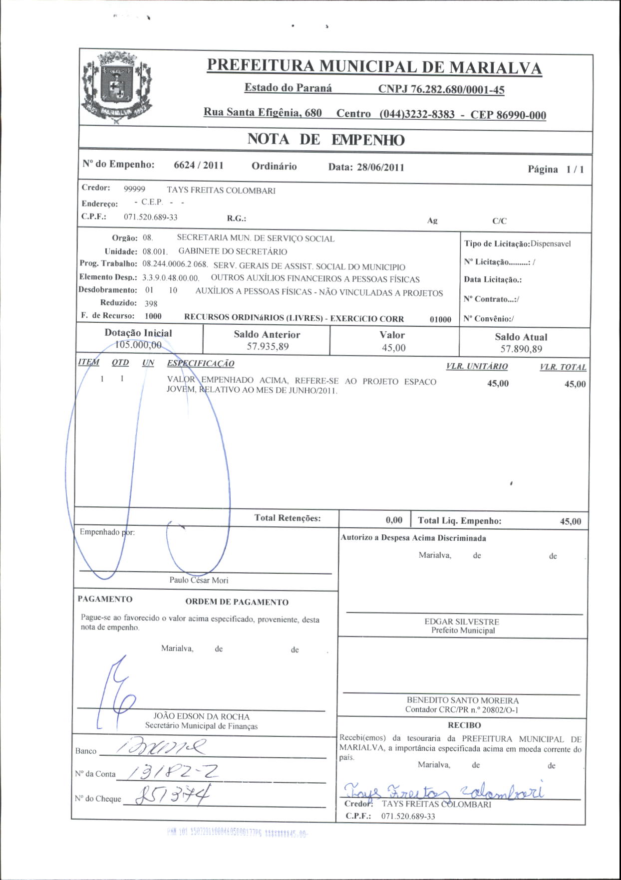 Index of /2011/JUNHO/BALANCETE JUNHO-2011/TAYS FREITAS COLOMBARI/6624-2011