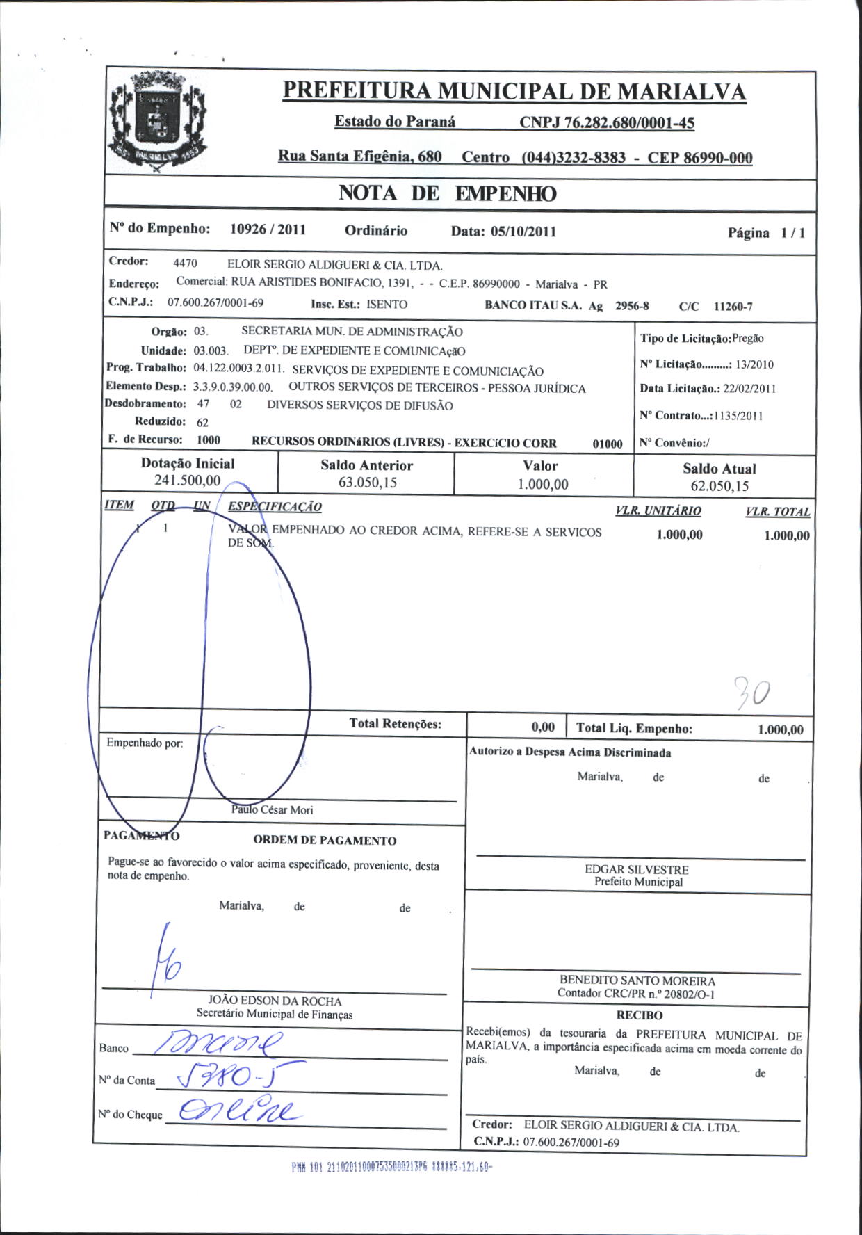 Index of /2011/OUTUBRO/BALANCETE OUTUBRO-2011/ELOIR SERGIO ALDIGUERI & CIA. LTDA/10926-2011