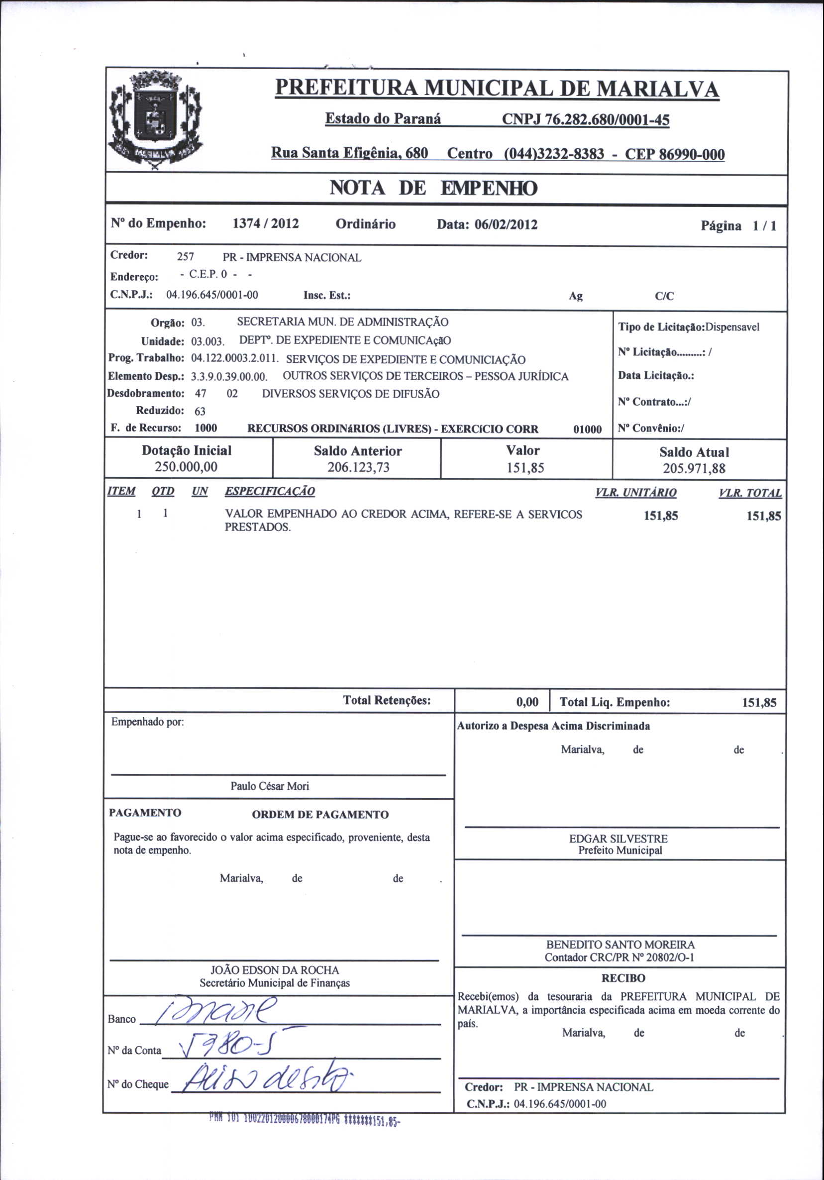 Index of /2012/FEVEREIRO/BALANCETE FEVEREIRO-2012/PR - IMPRENSA NACIONAL/1374-2012