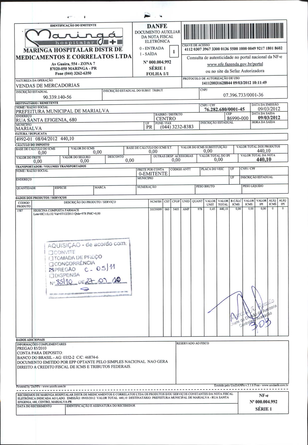 Index of /2012/JUNHO/BALANCETE JUNHO-2012/MARINGA HOS. DIST. DE MED. CORRELATOS LTDA/2871-2012