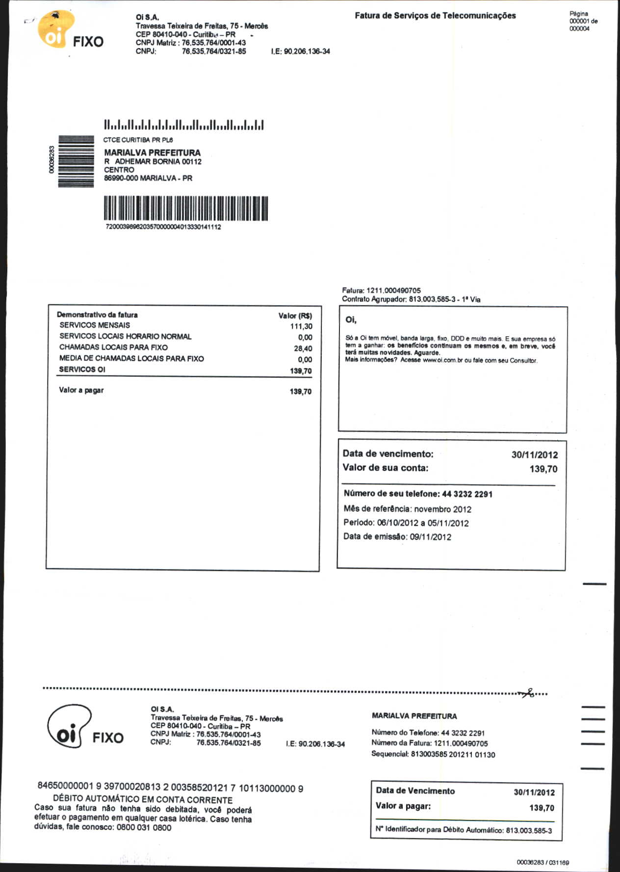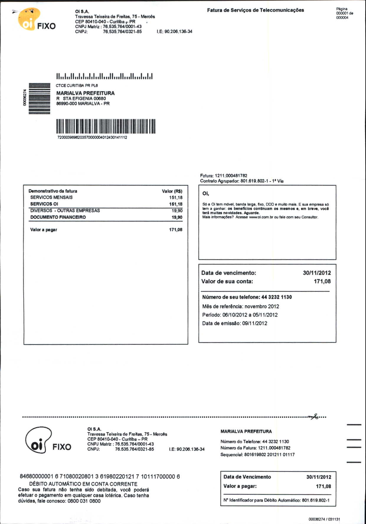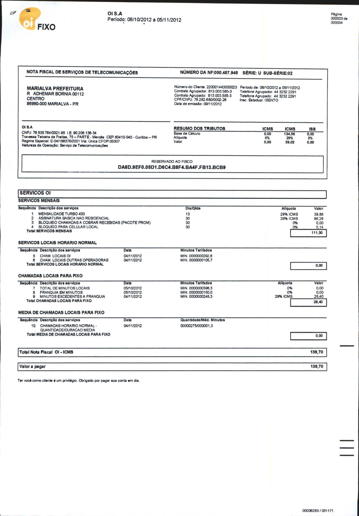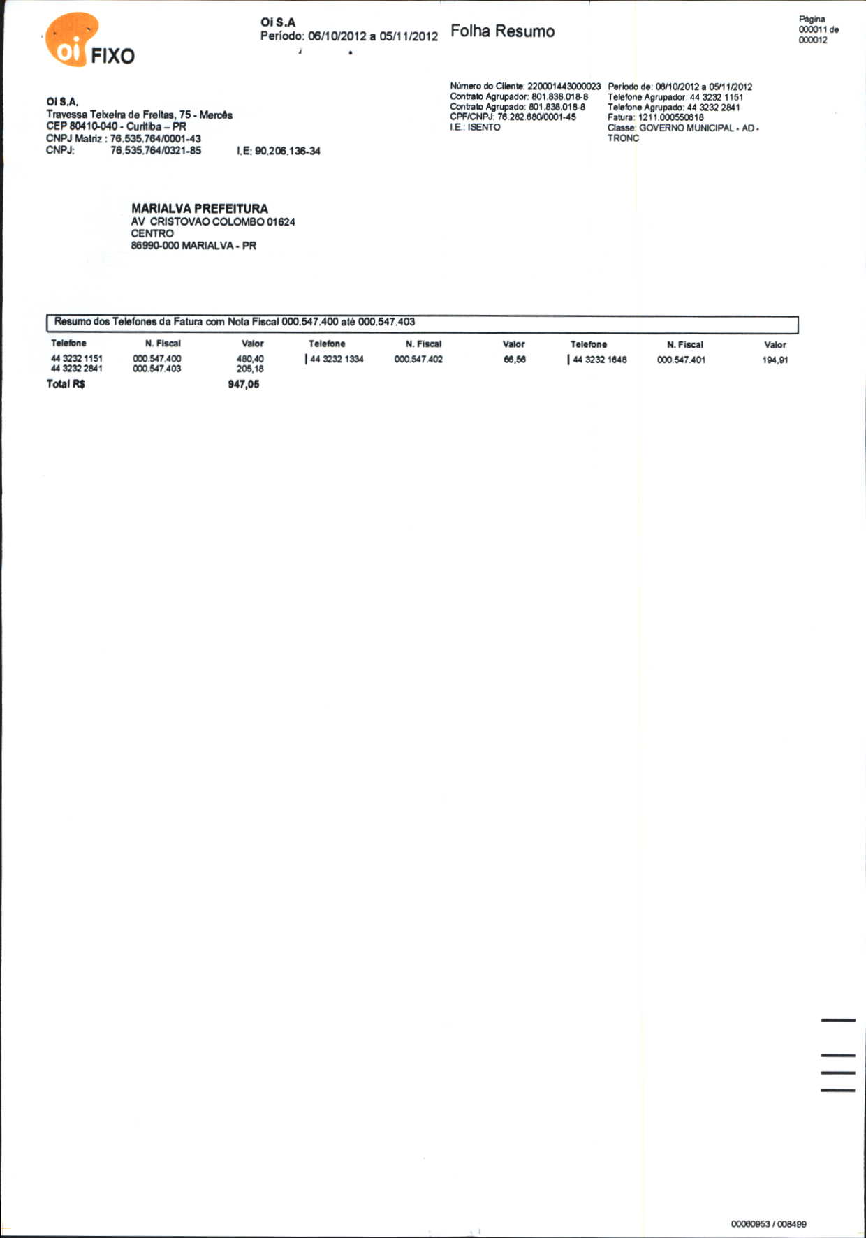Index of /2012/NOVEMBRO/BALANCETE NOVEMBRO-2012/OI. S.A/13882-2012