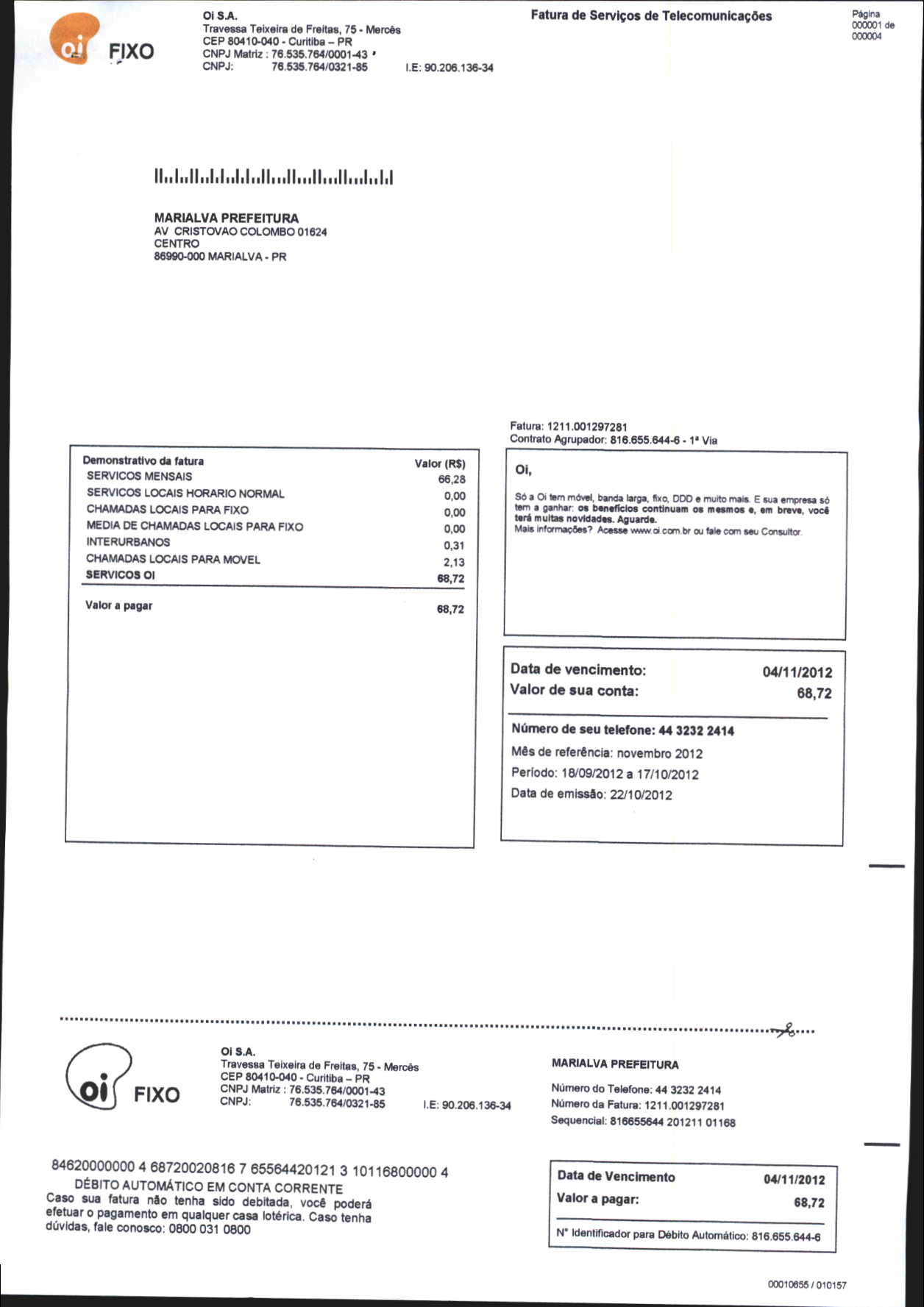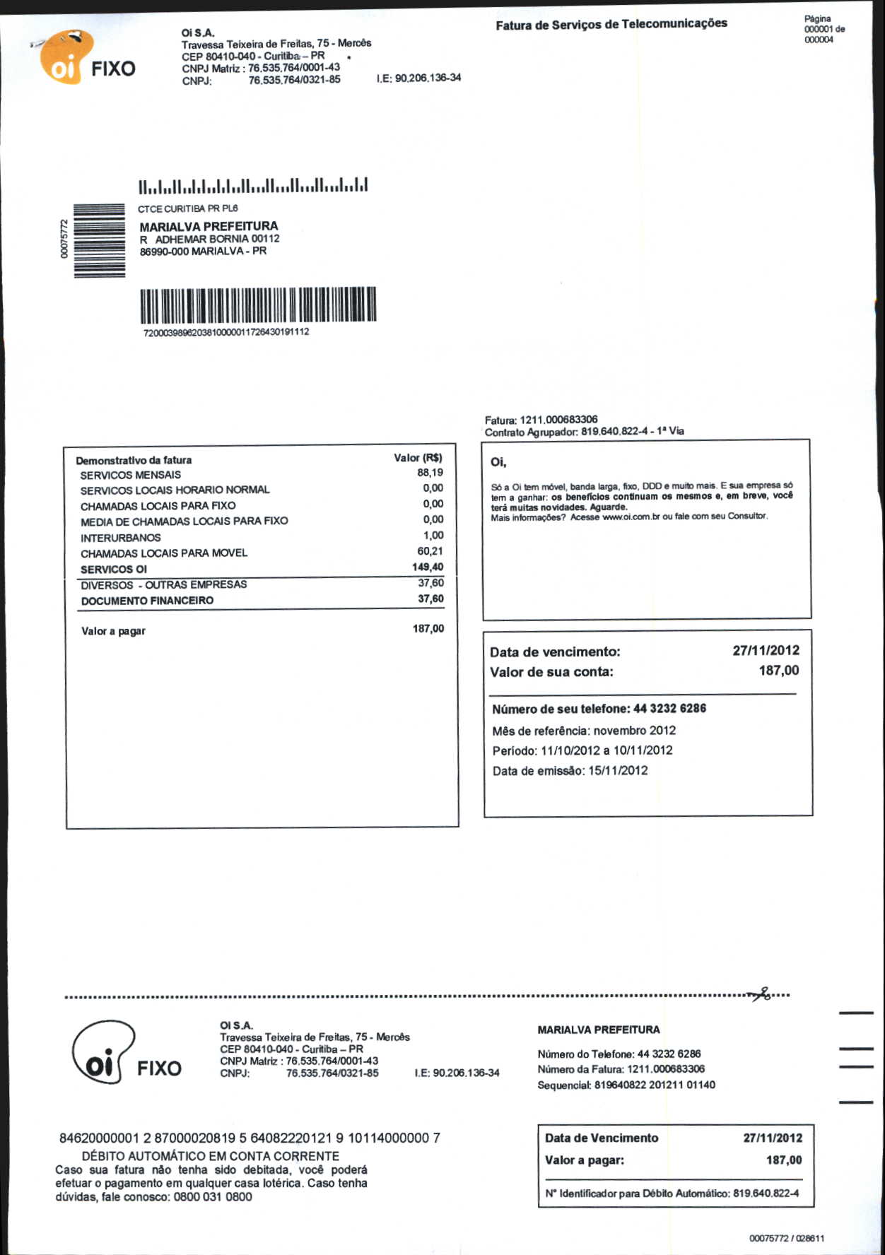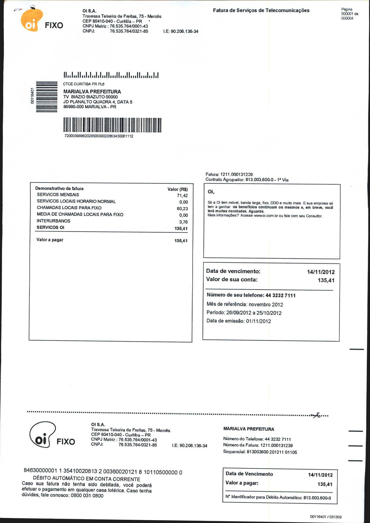 Index of /2012/NOVEMBRO/BALANCETE NOVEMBRO-2012/OI. S.A/13882-2012
