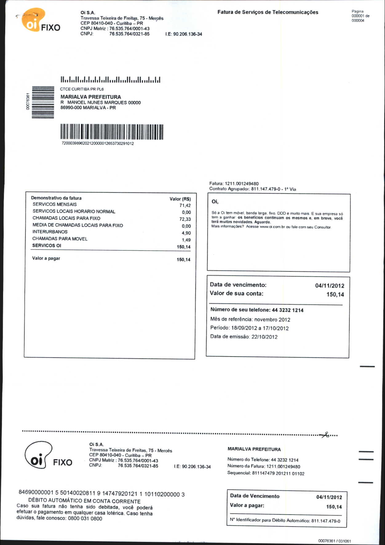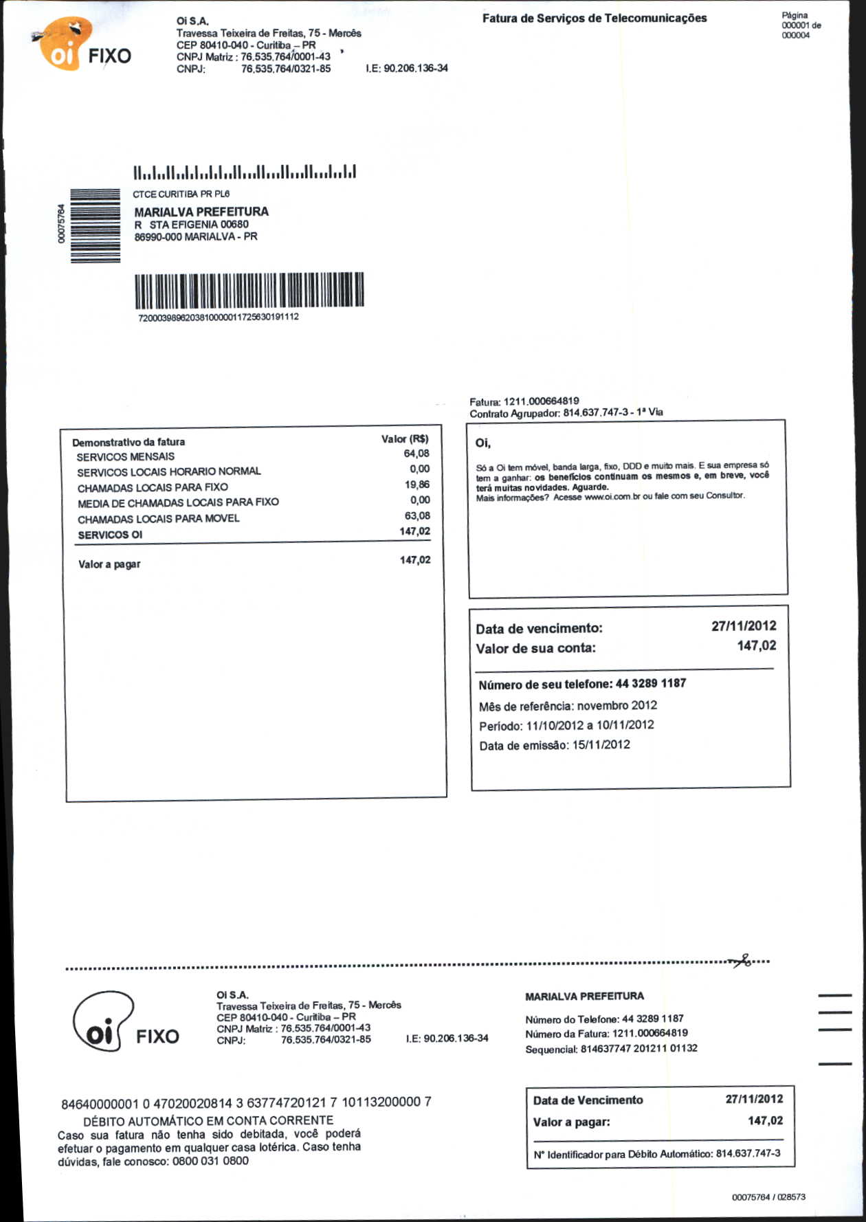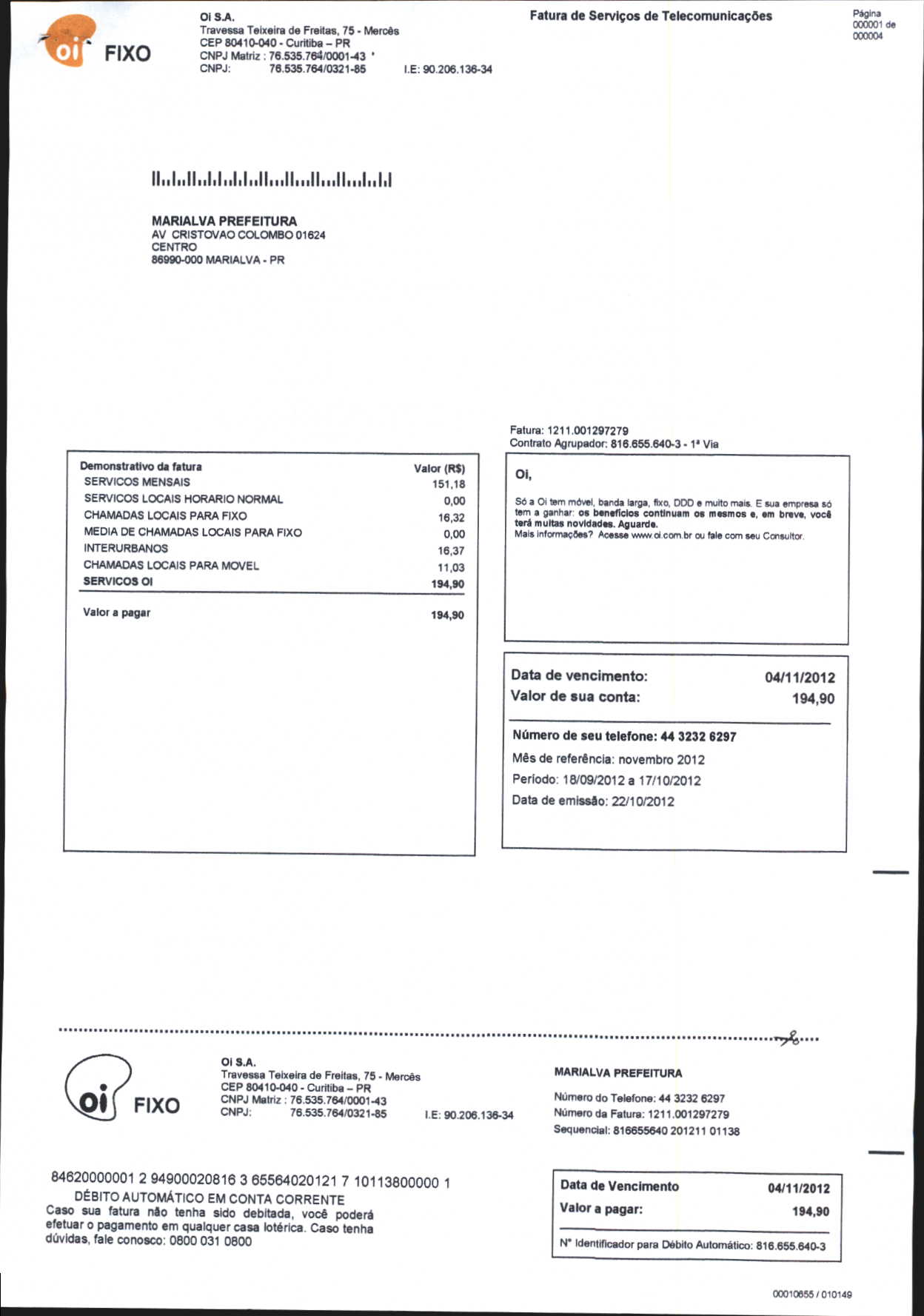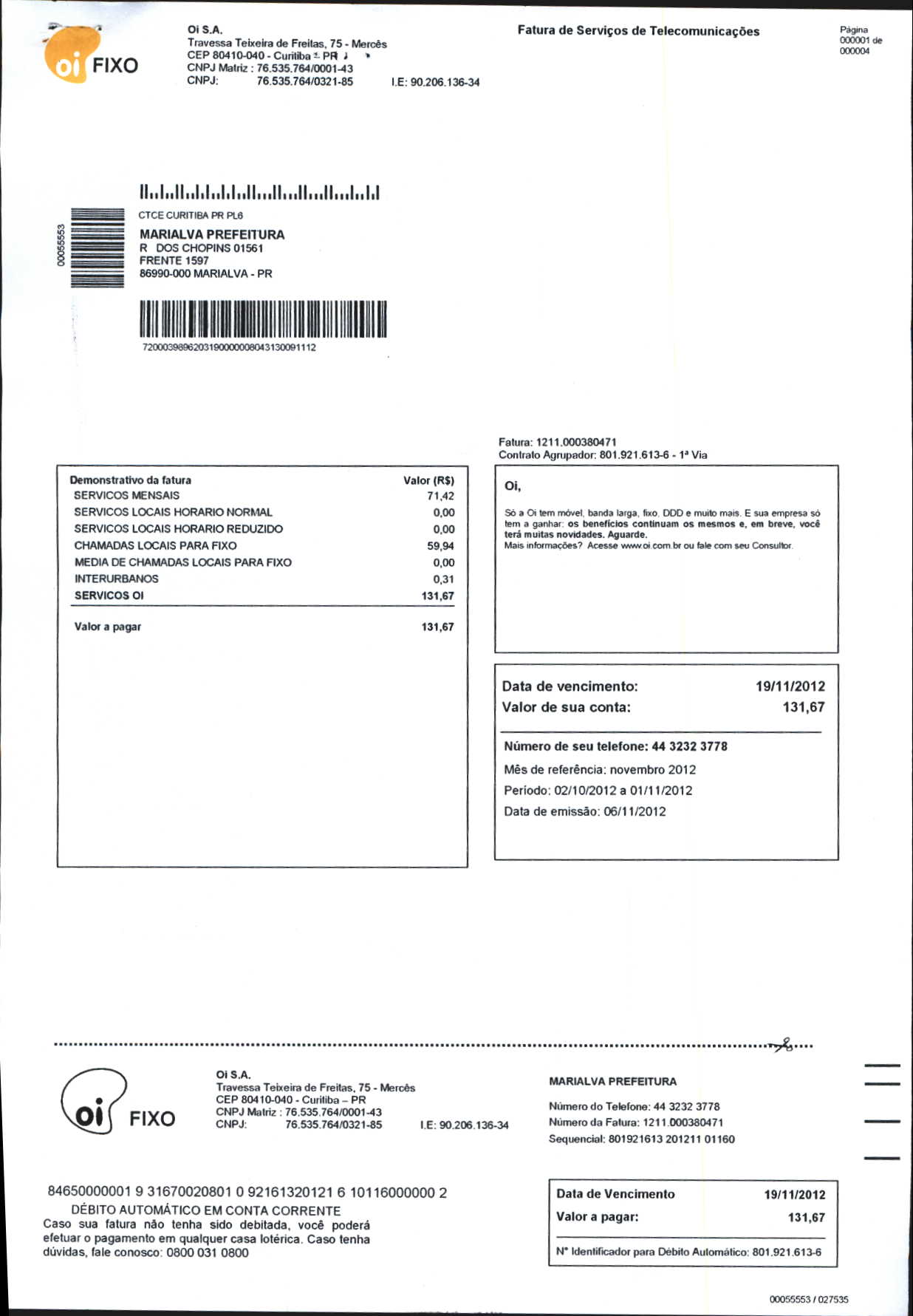 Index of /2012/NOVEMBRO/BALANCETE NOVEMBRO-2012/OI. S.A/13882-2012