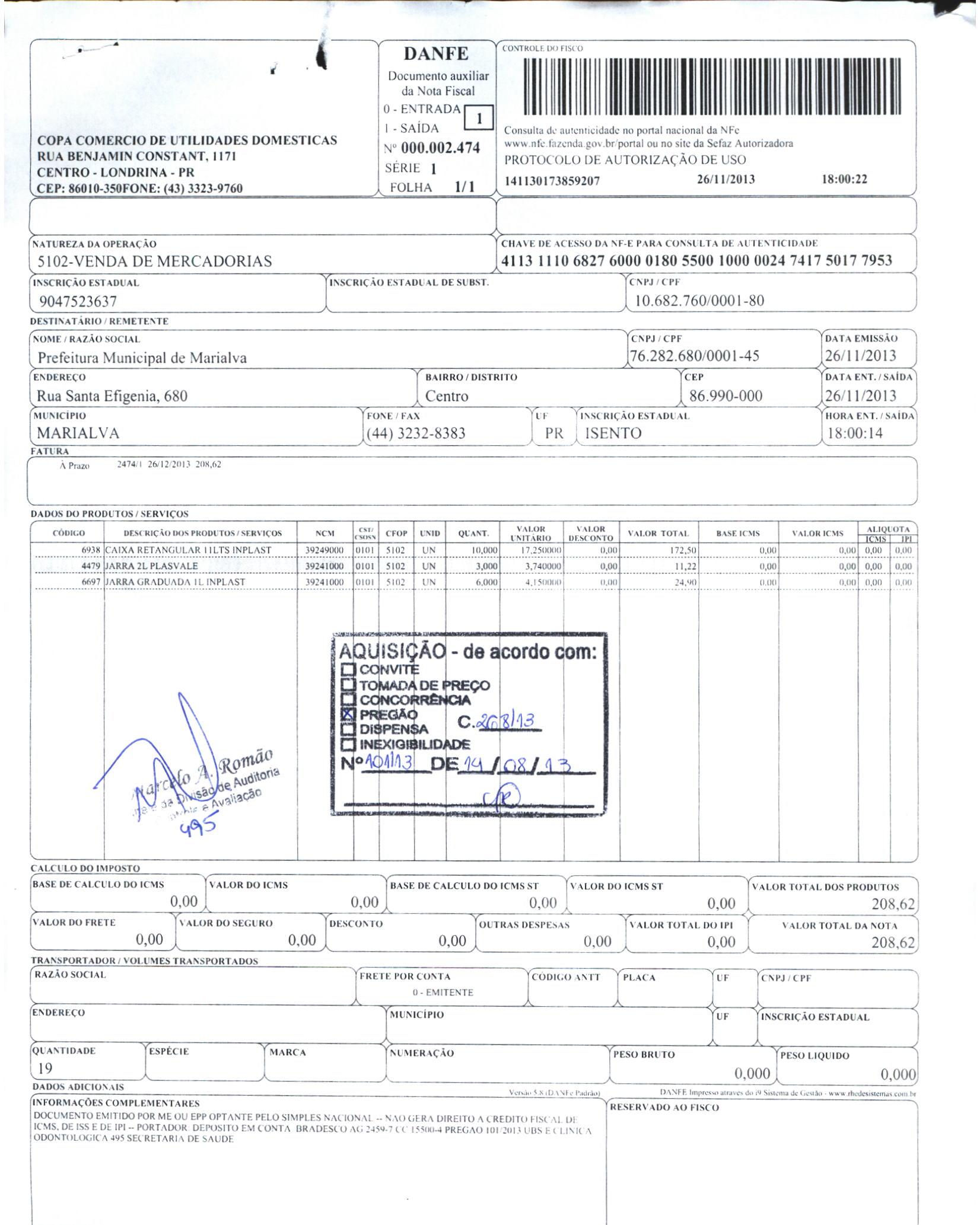 Index of /2013/DEZEMBRO/BALANCETE DEZEMBRO 2013/COPA COMERCIO DE UTILIDADES DOMESTICAS LTDA ME/15915-2013