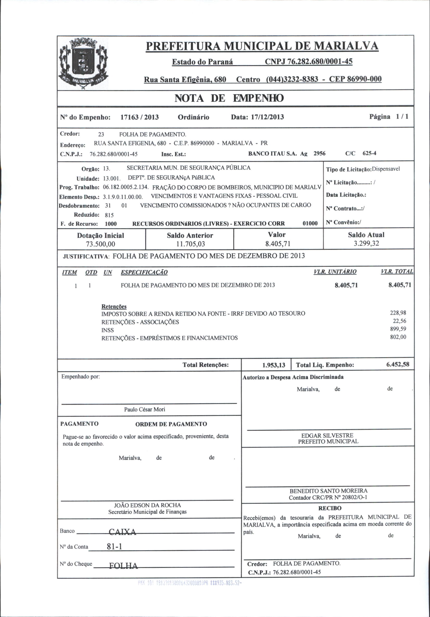 Index of /2013/DEZEMBRO/BALANCETE DEZEMBRO 2013/FOLHA DE PAGAMENTO/17163-2013
