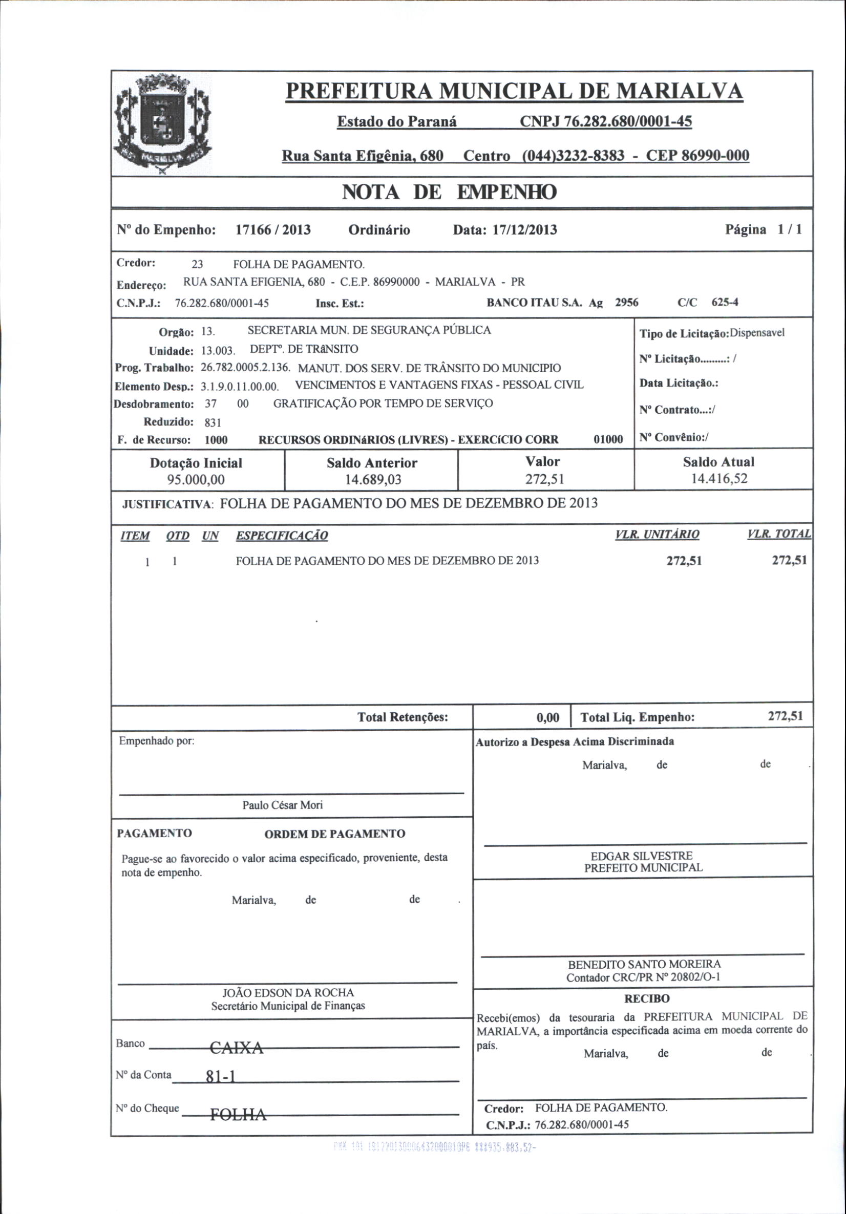 Index of /2013/DEZEMBRO/BALANCETE DEZEMBRO 2013/FOLHA DE PAGAMENTO/17166-2013