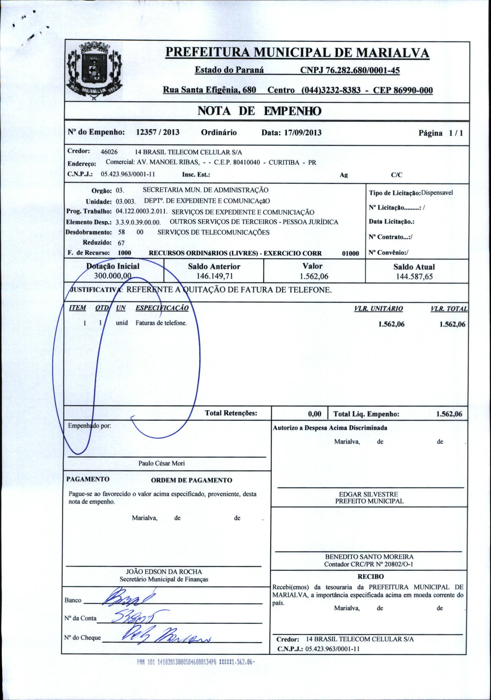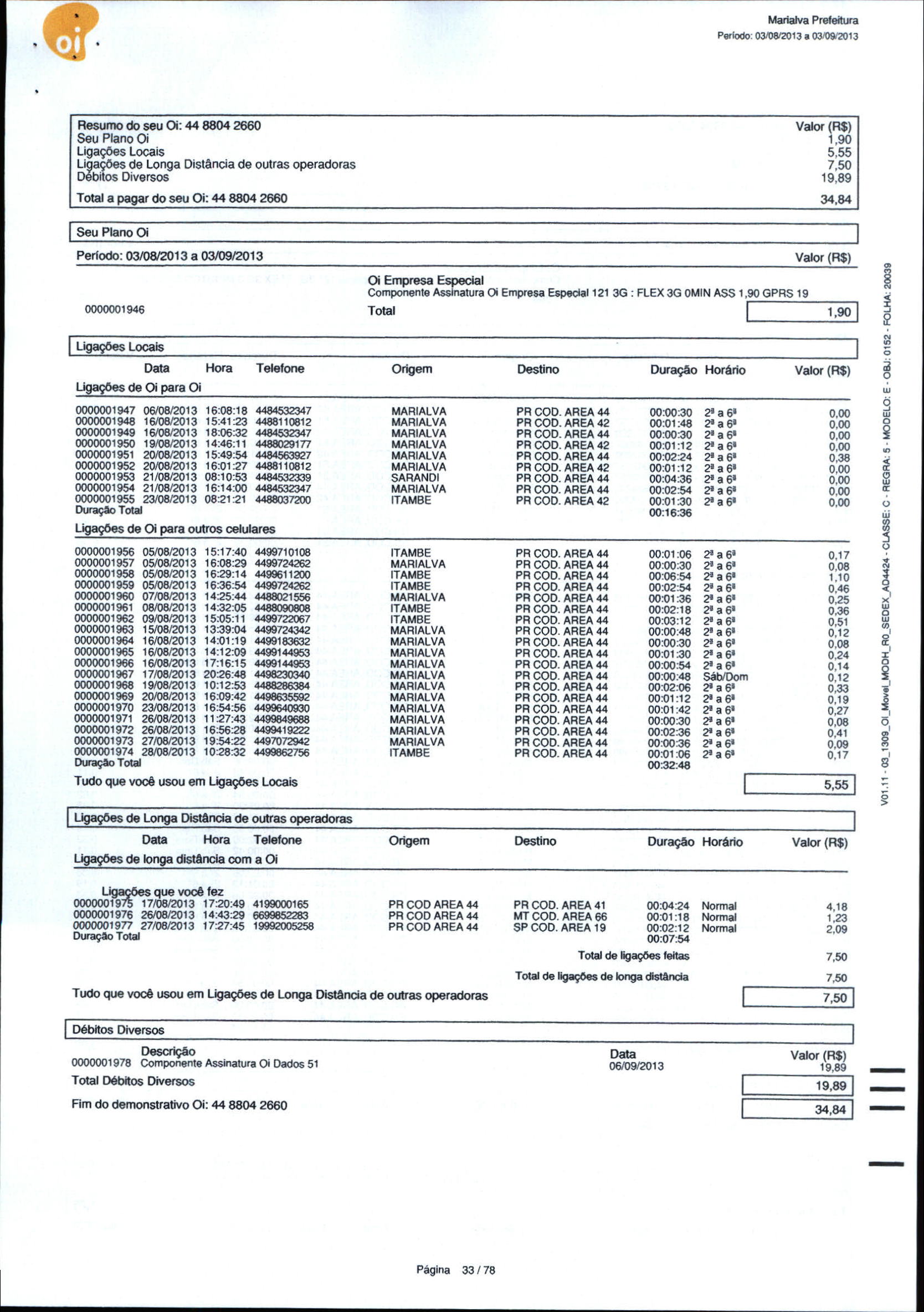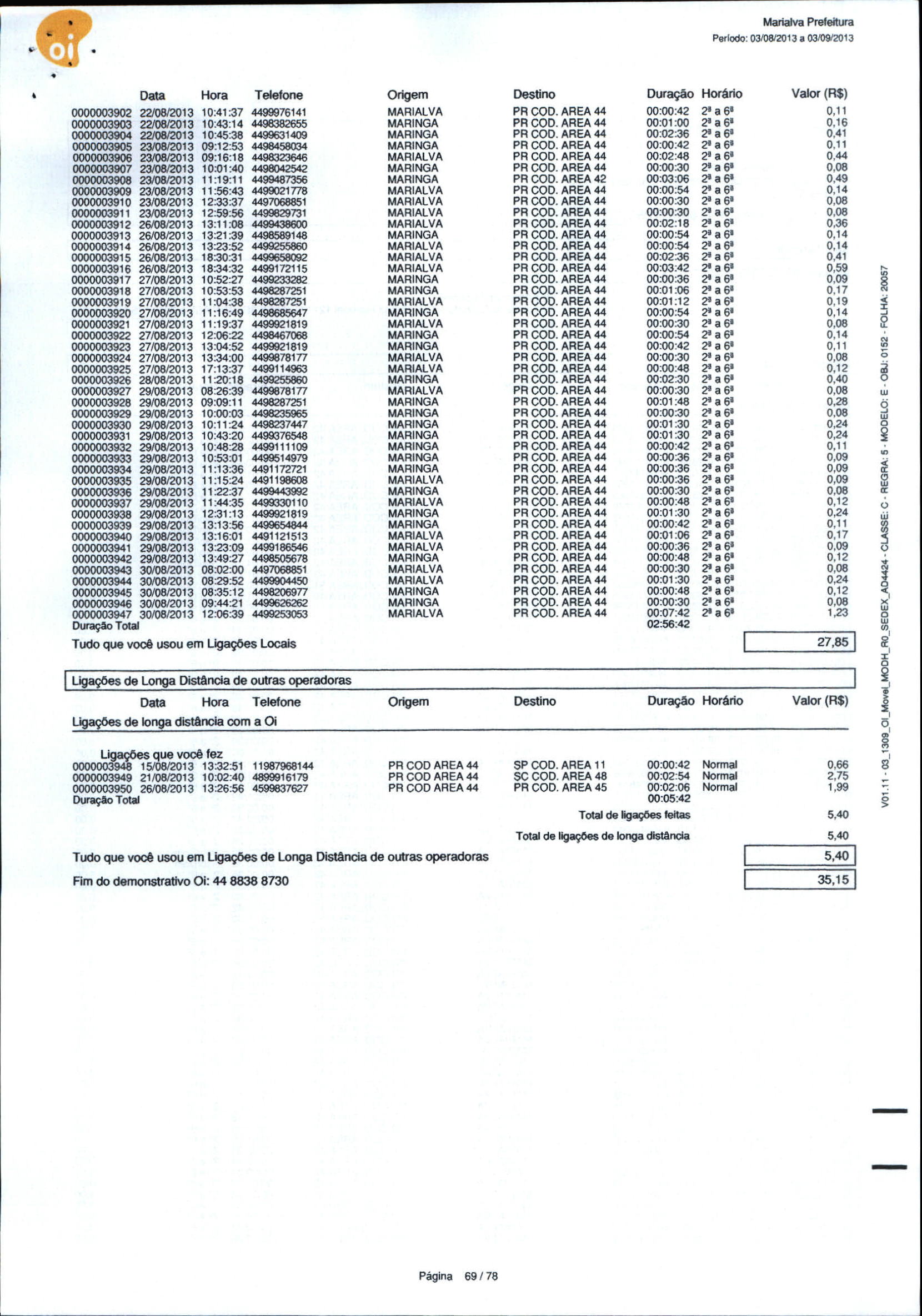 Index of /2013/OUTUBRO/BALANCETE OUTUBRO 2013/14 BRASIL TELECOM CELULAR S A/12357-2013