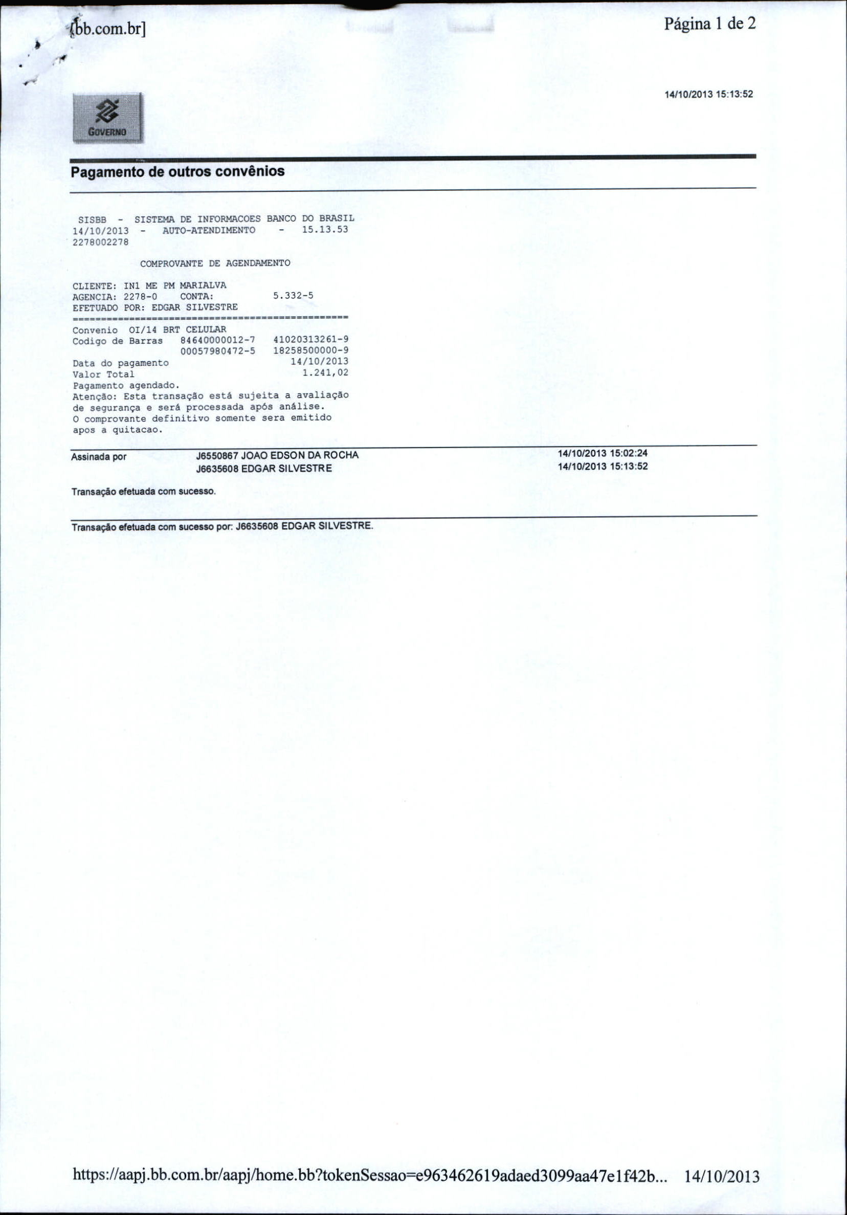 Index of /2013/OUTUBRO/BALANCETE OUTUBRO 2013/14 BRASIL TELECOM CELULAR S A/12361-2013