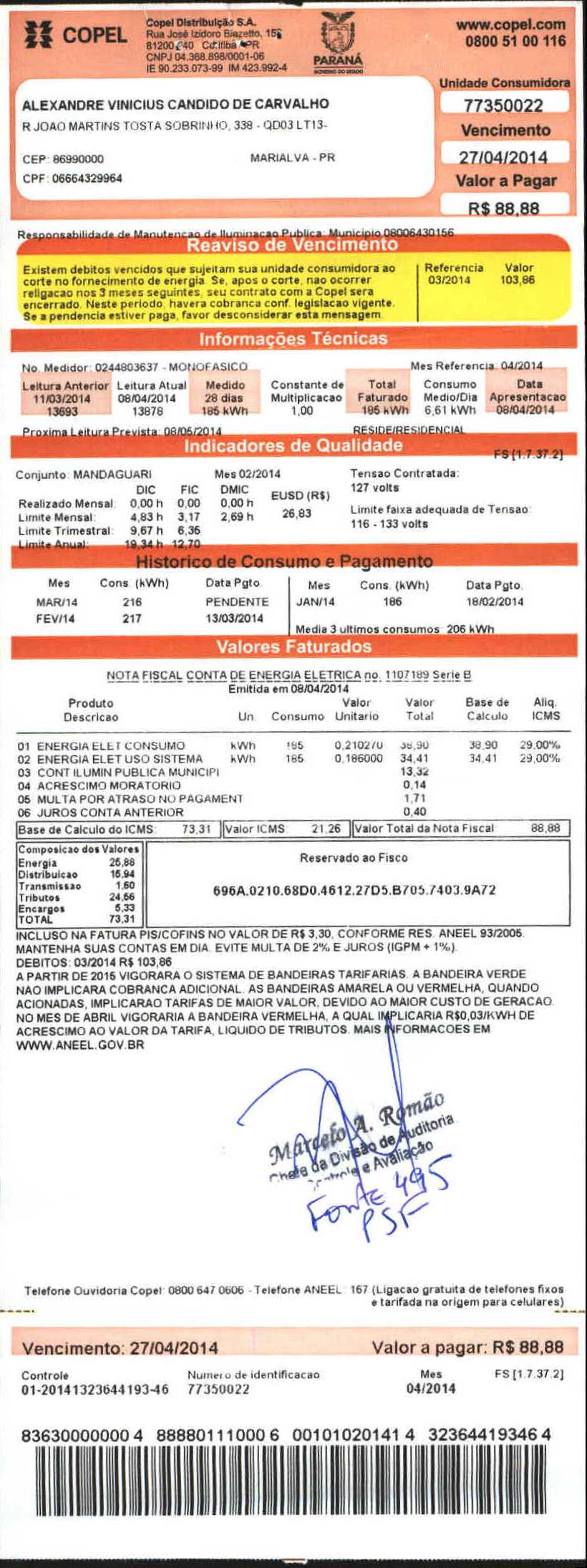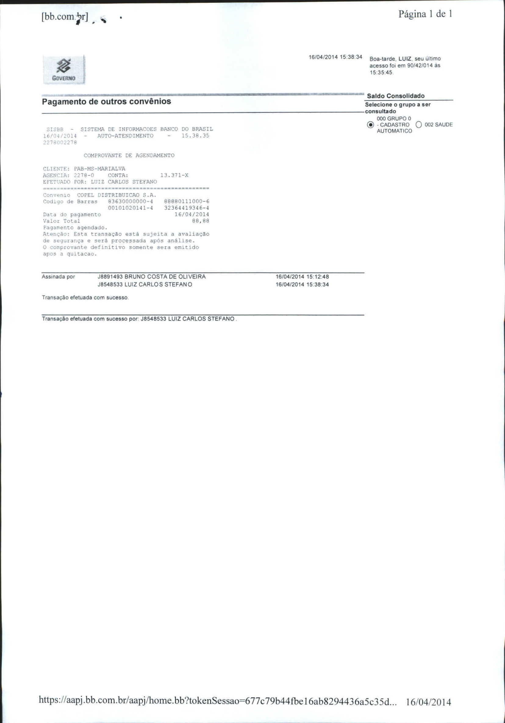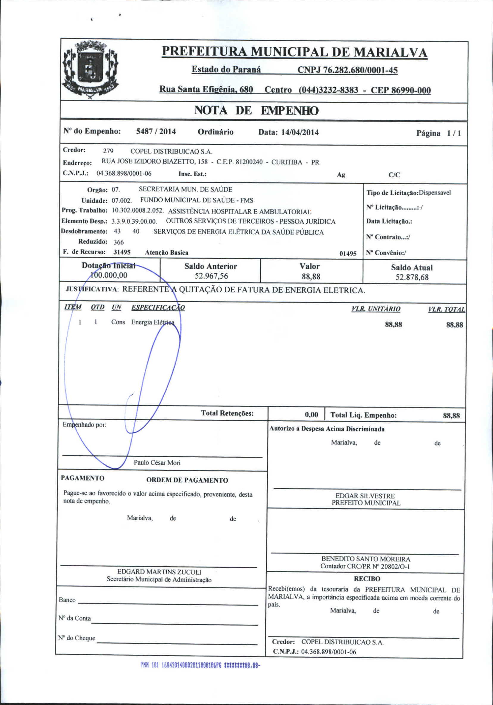 Index of /2014/ABRIL/BALANCETE ABRIL 2014/COPEL DISTRIBUICAO S.A/5487-2014