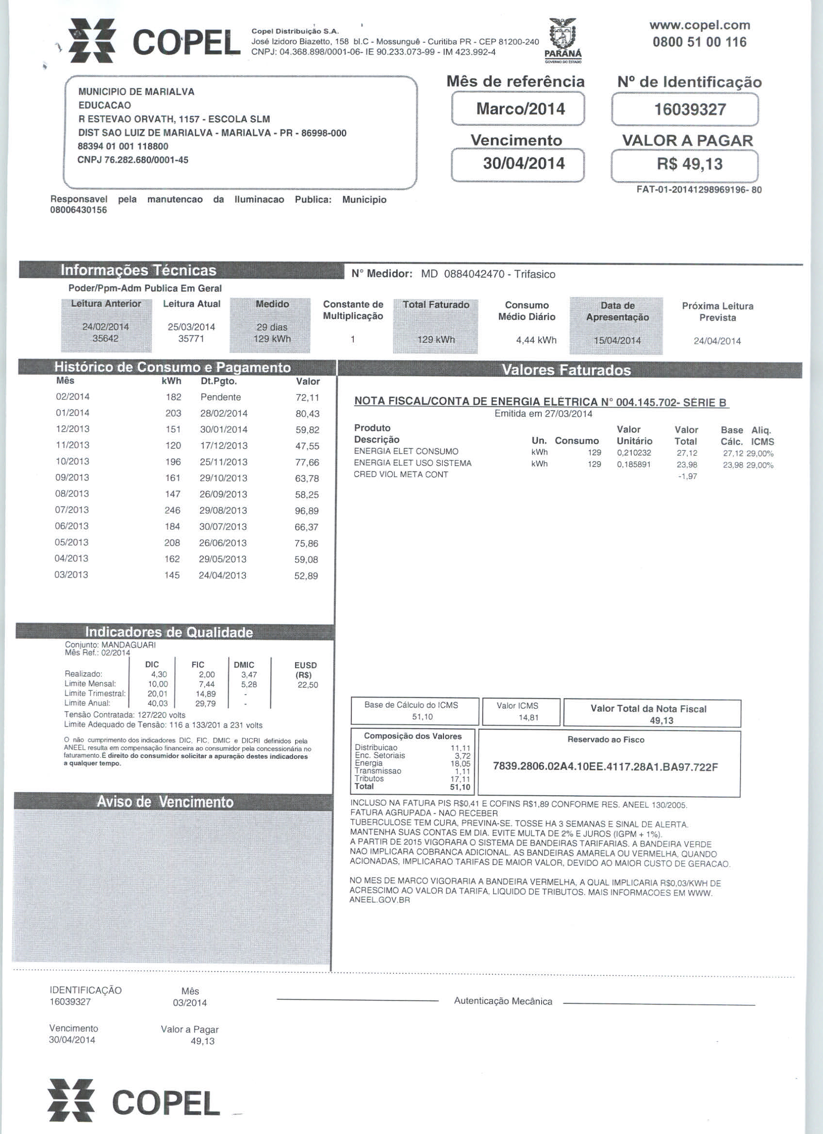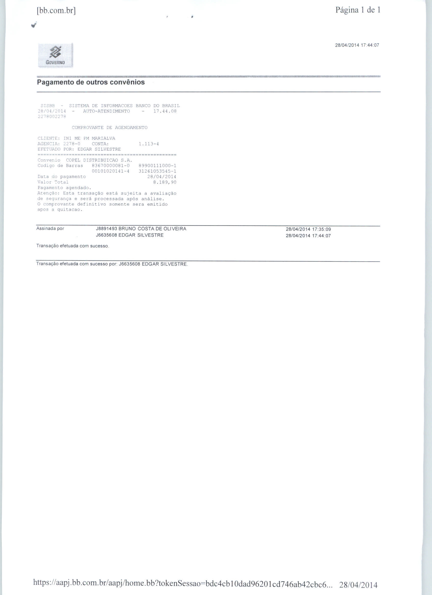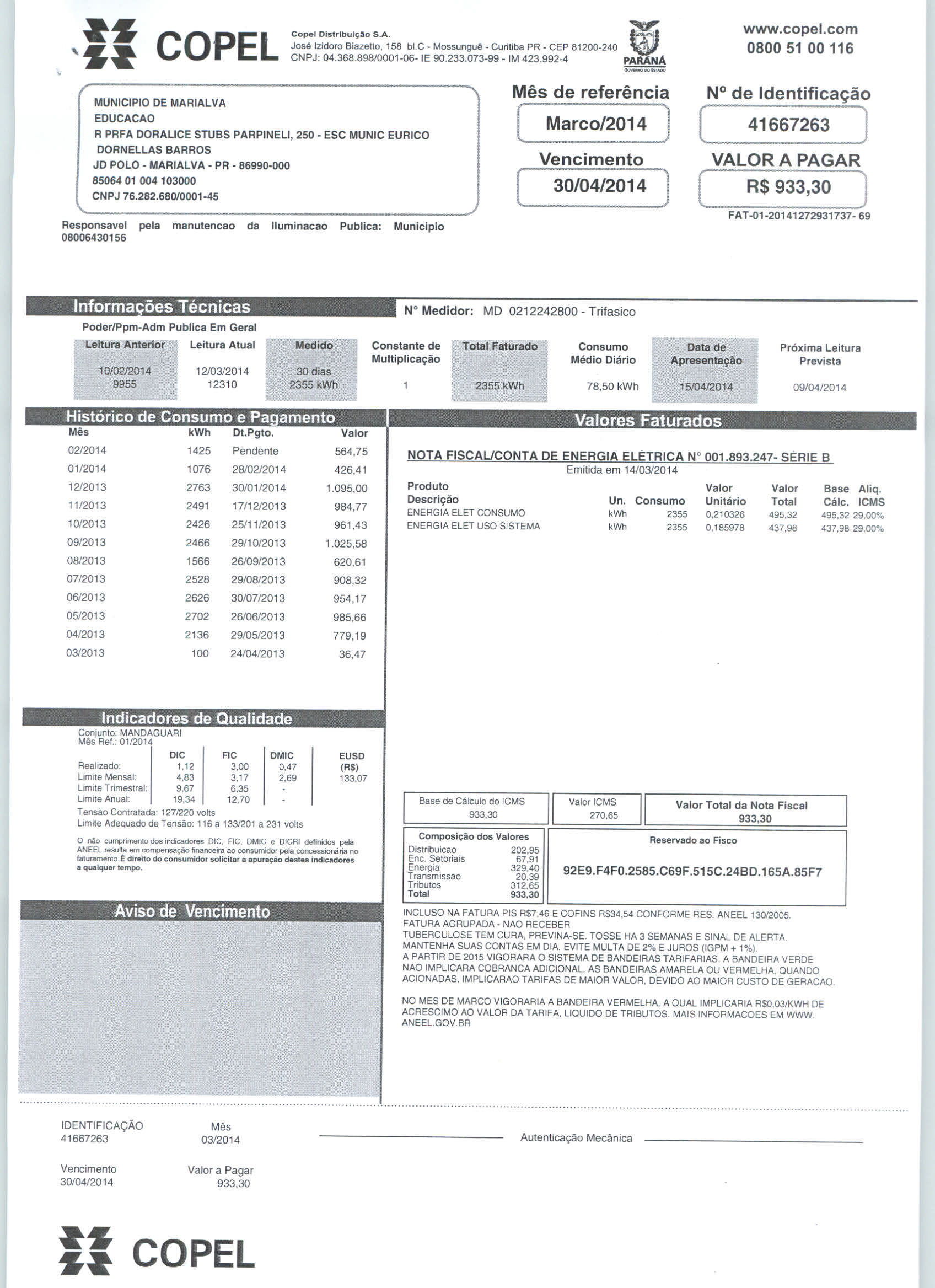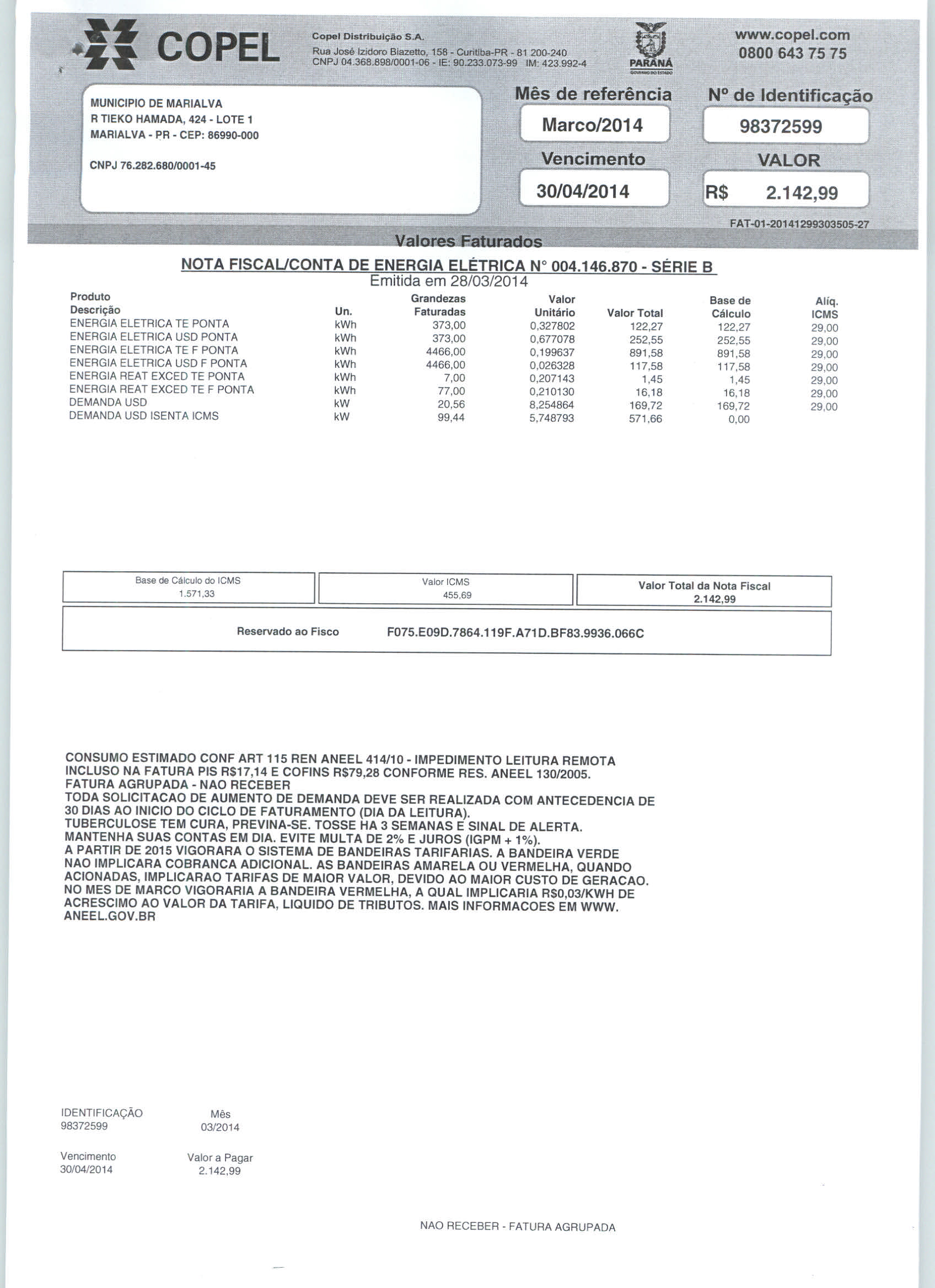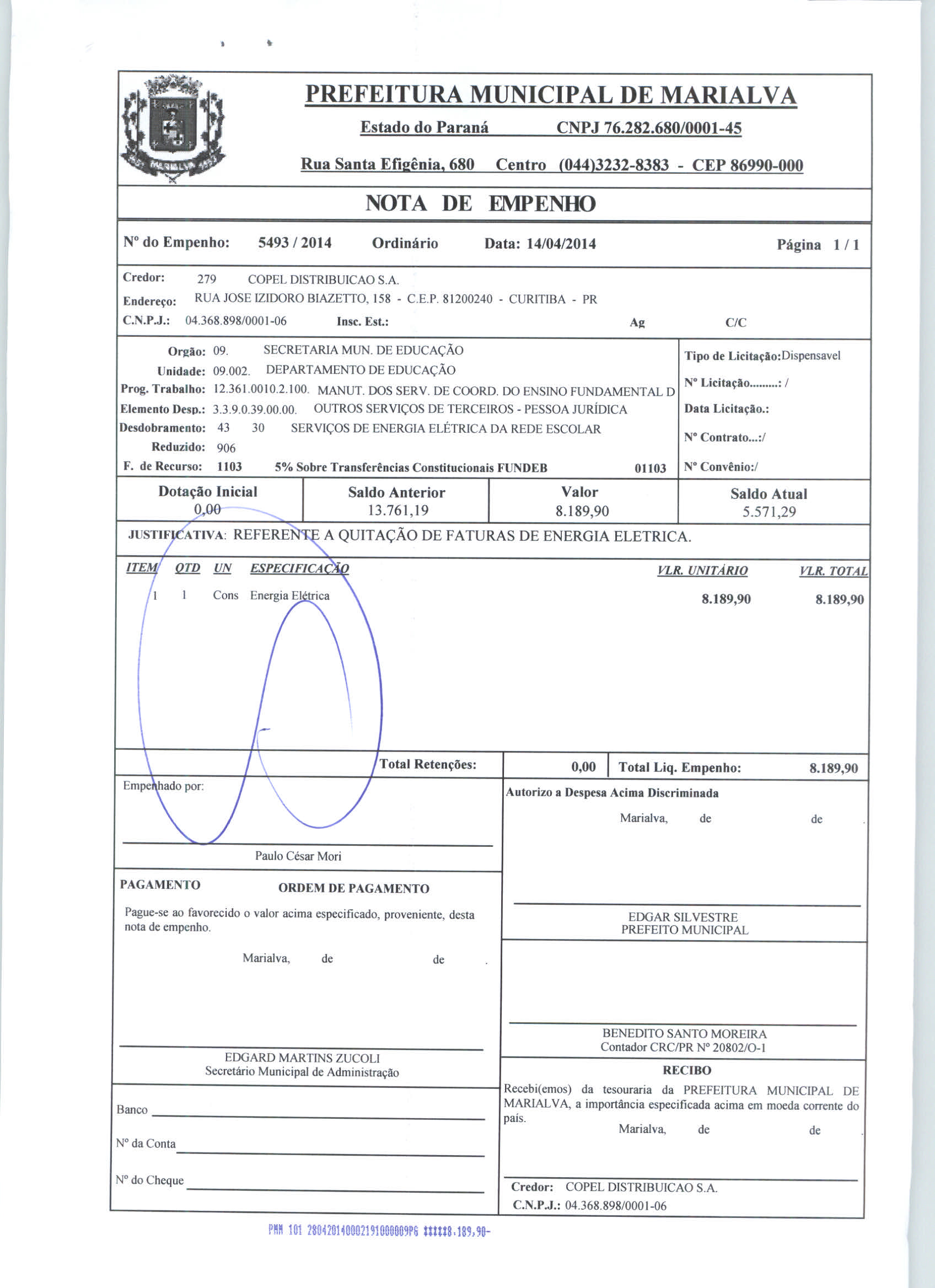 Index of /2014/ABRIL/BALANCETE ABRIL 2014/COPEL DISTRIBUICAO S.A/5493-2014