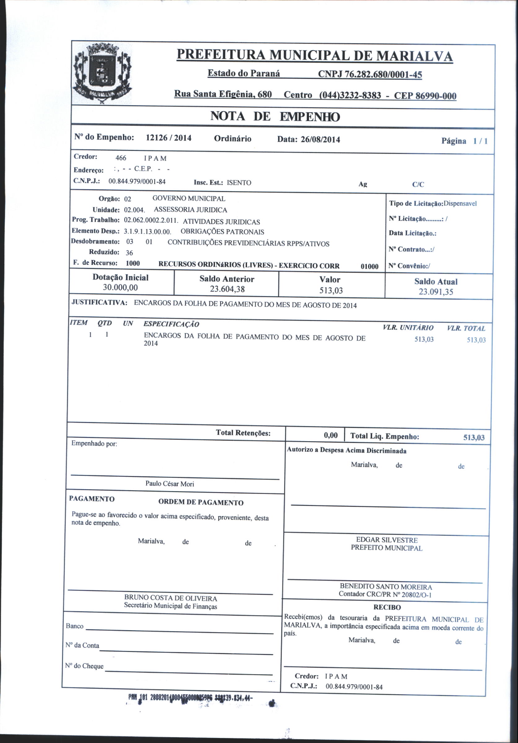 Index of /2014/AGOSTO/BALANCETE AGOSTO-2014/I P A M/12126-2014