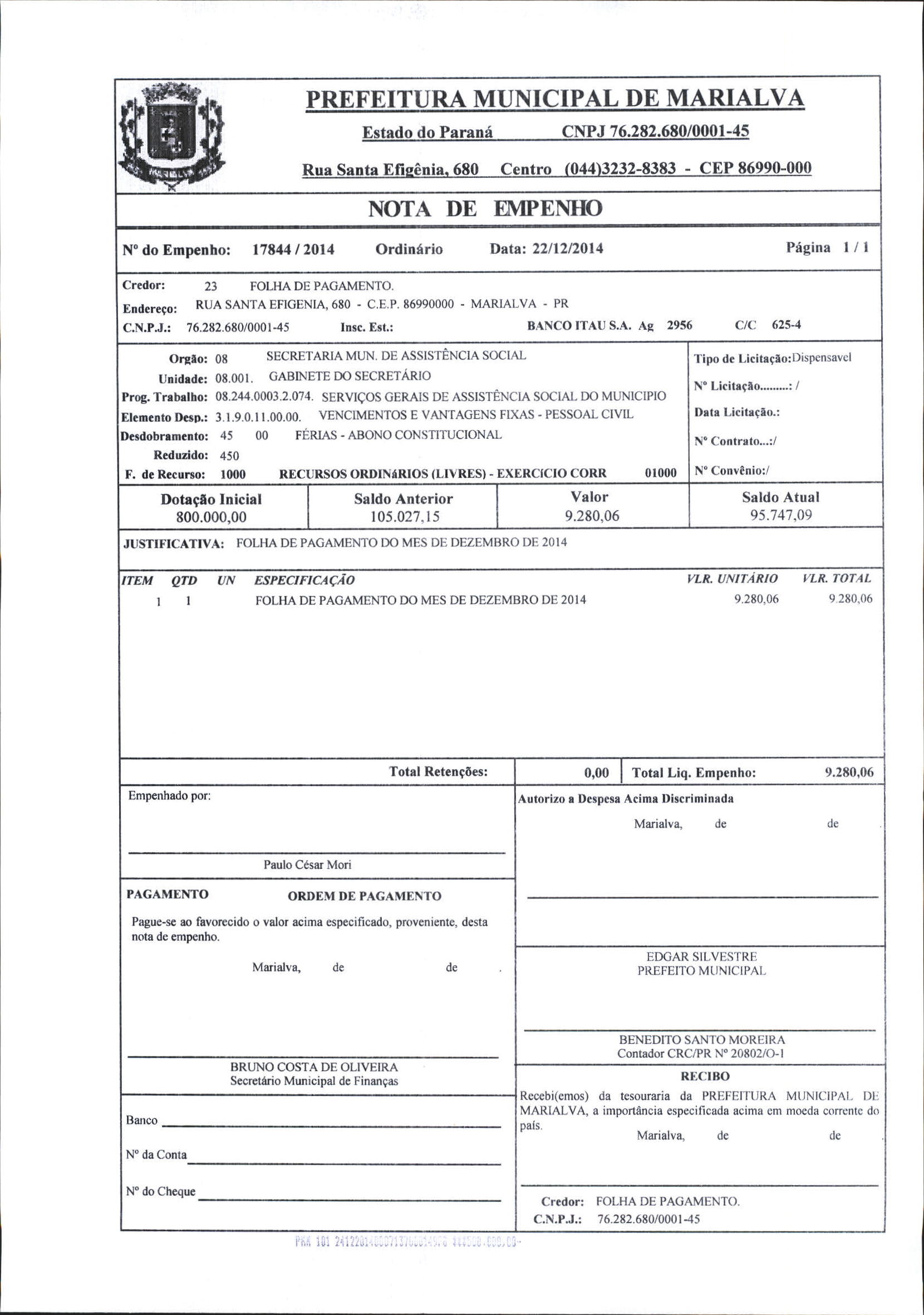 Index of /2014/DEZEMBRO/BALANCETE DEZEMBRO 2014/FOLHA DE PAGAMENTO/17844-2014