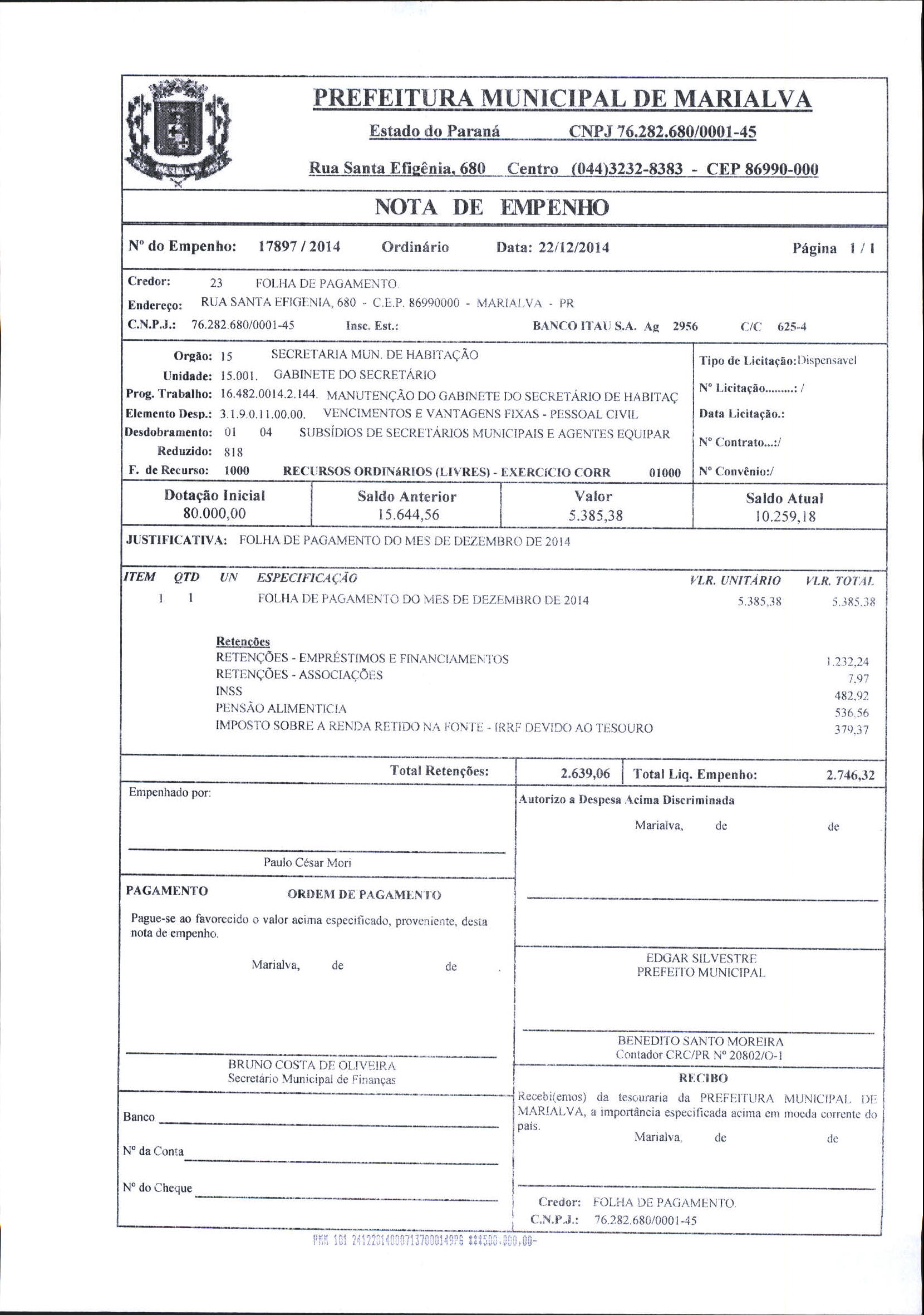 Index of /2014/DEZEMBRO/BALANCETE DEZEMBRO 2014/FOLHA DE PAGAMENTO/17897-2014