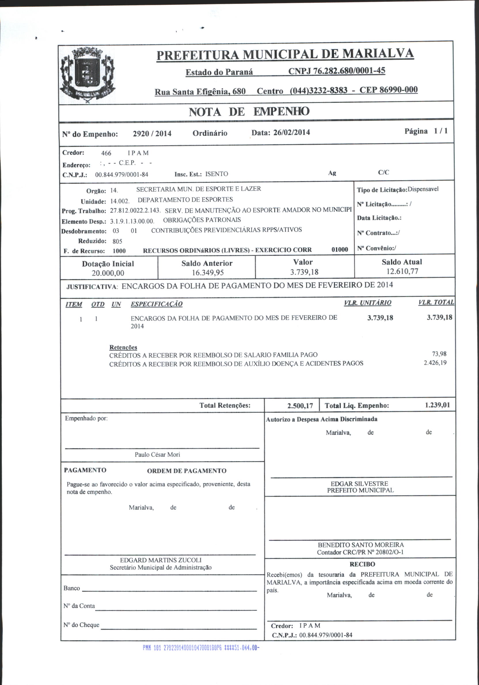 Index of /2014/FEVEREIRO/BALANCETE FEVEREIRO 2014/I P A M/2920-2014