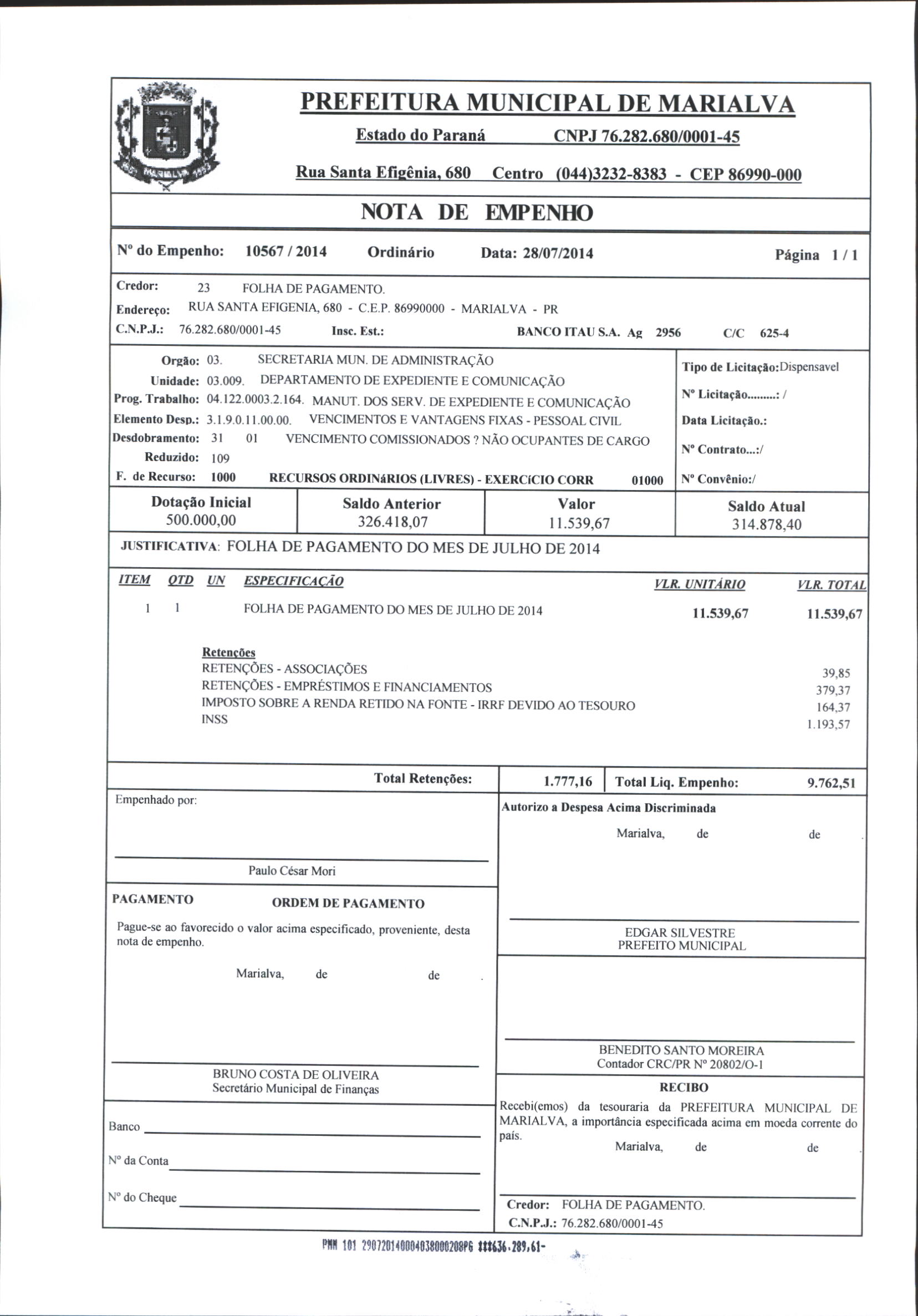 Index of /2014/JULHO/BALANCETE DE JULHO-2014/FOLHA DE PAGAMENTO/10567-2014