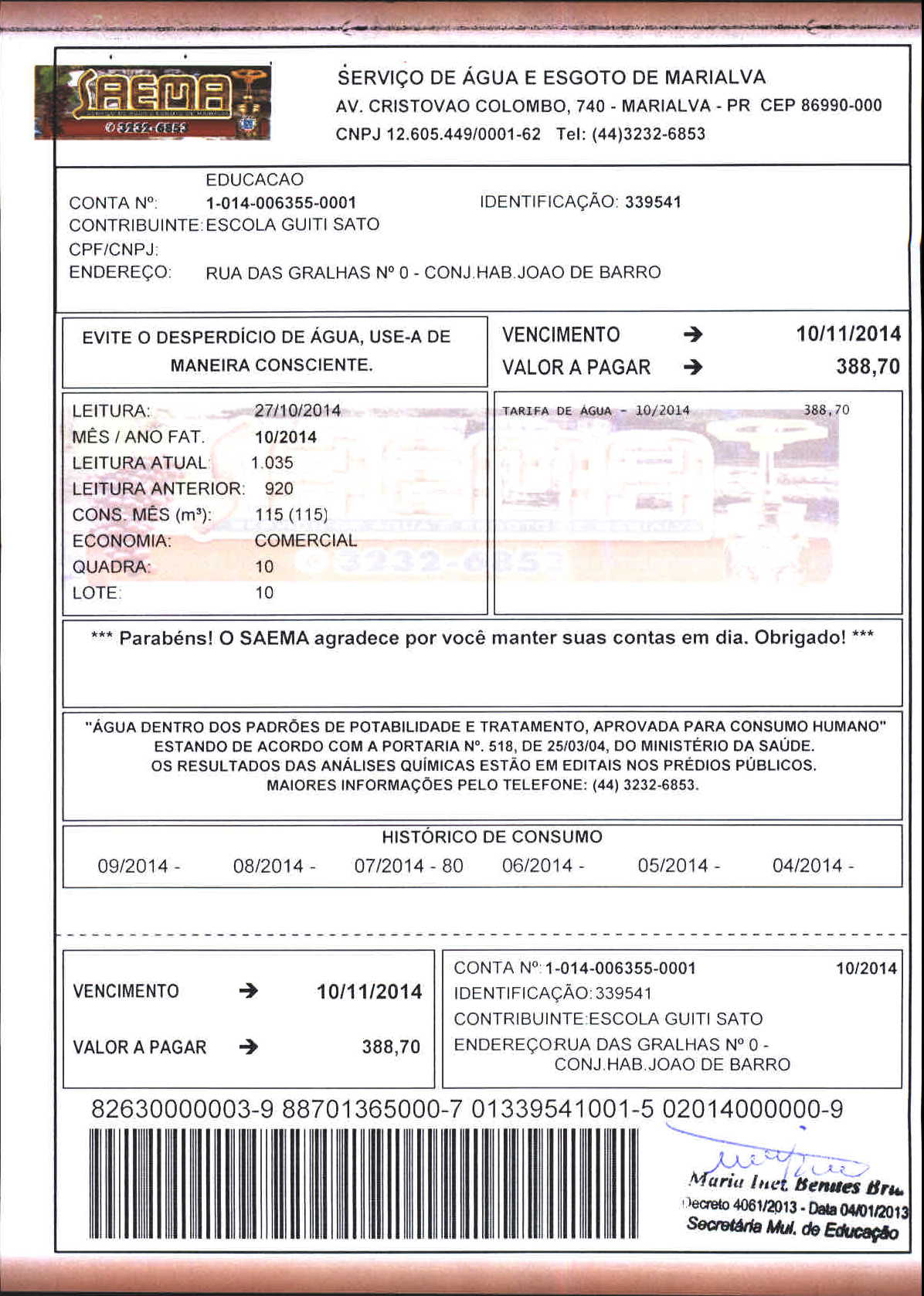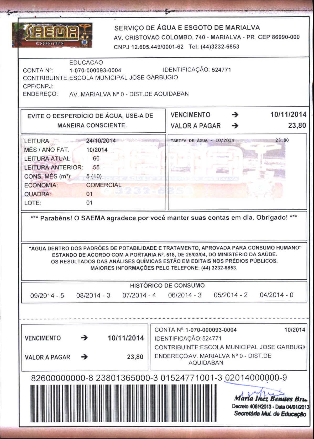 Index of /2014/NOVEMBRO/BALANCETE NOVEMBRO 2014/SERVICO DE AGUA E ESGOTO DE MARIALVA/15864-2014