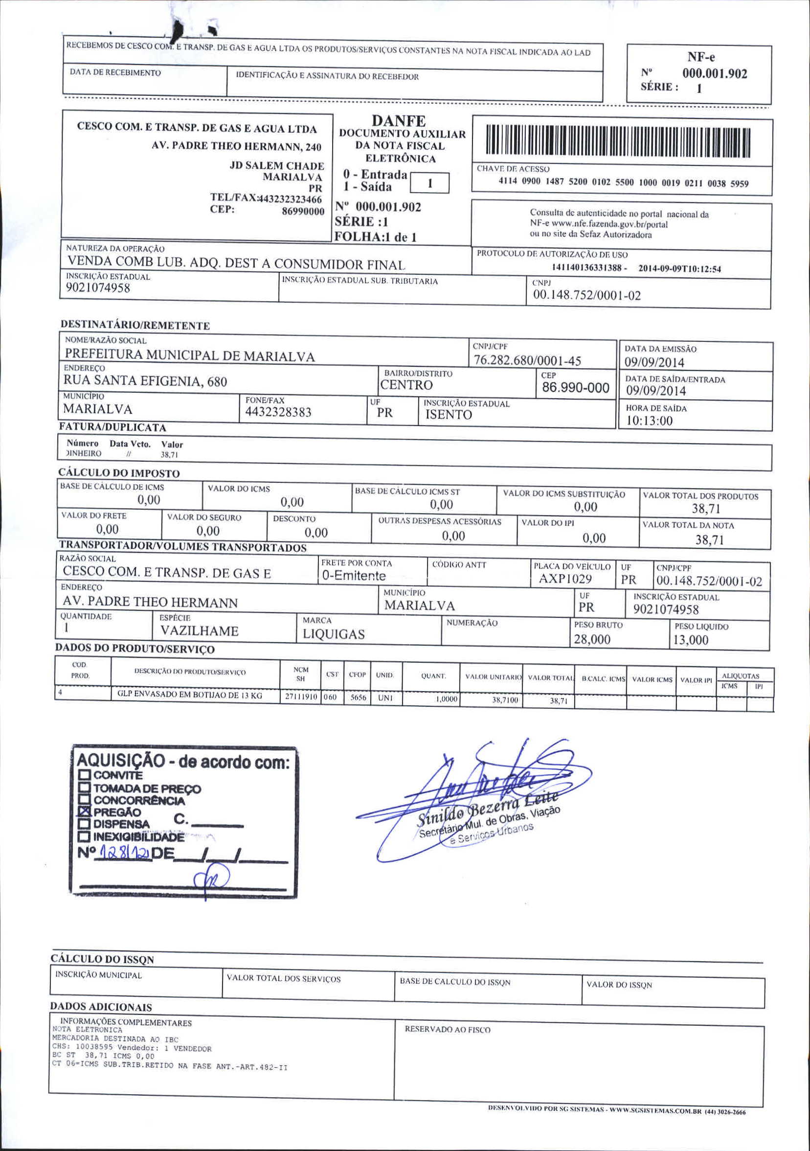 Index of /2014/OUTUBRO/BALANCETE OUTUBRO 2014/CESCO COM. E TRANSPORTE DE GAS E AGUA LT/12899-2014