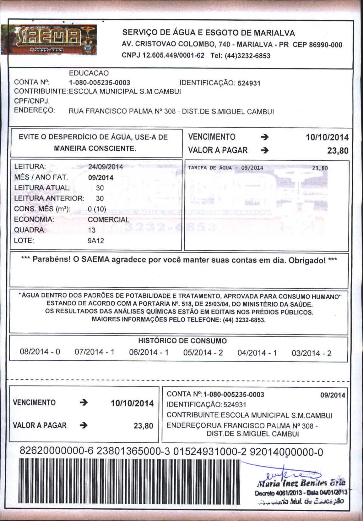 Index of /2014/OUTUBRO/BALANCETE OUTUBRO 2014/SERVICO DE AGUA E ESGOTO DE MARIALVA/14199-2014