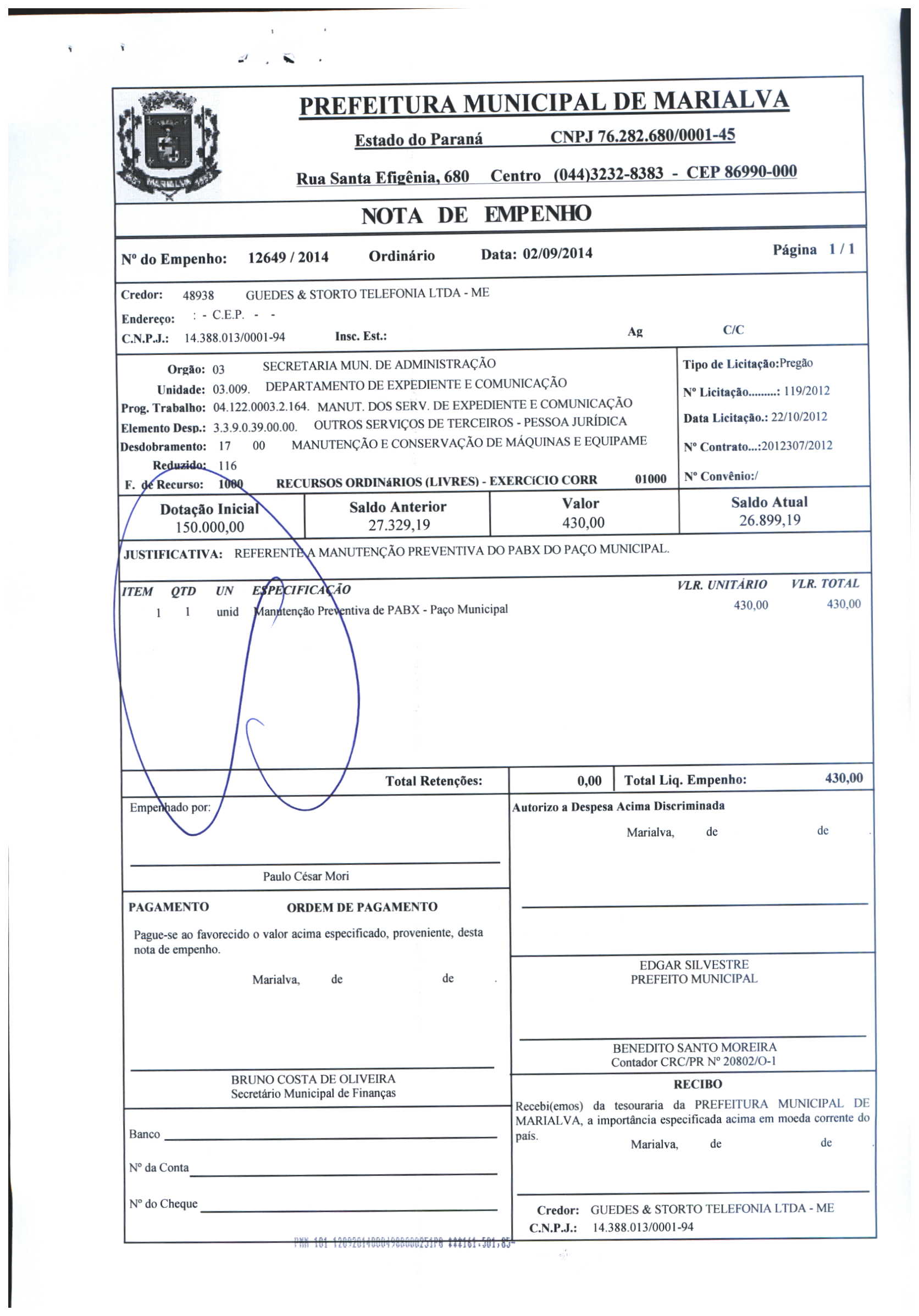 Index of /2014/SETEMBRO/BALANCETE SETEMBRO 2014/GUEDES E MOREIRA TELEFONIA LTDA-ME/12649-2014
